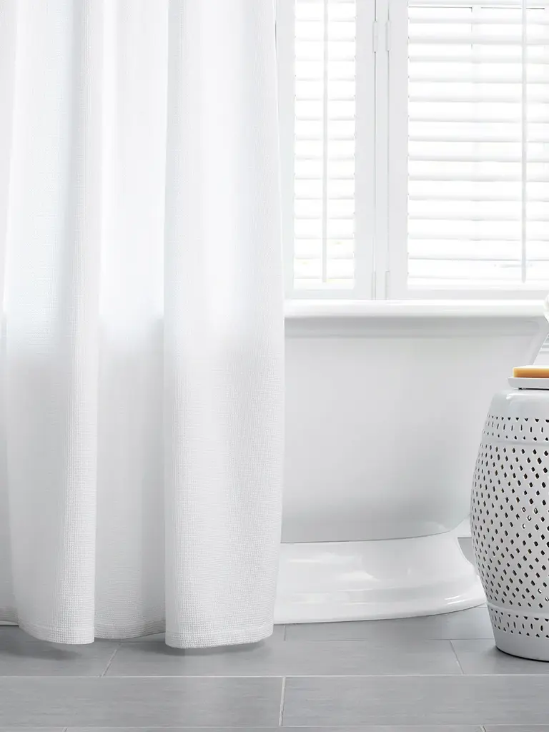 Inspired by our bestselling Waffle Bed Blanket, the Waffle Shower Curtain brings its touchable texture into a smaller micro-waffle design. It starts with the highest quality threads sourced from the finest long-staple 100% organic cotton on earth. The result: a dimensional bath fabric that gets loftier with every wash. The Feel Plush-yet-springy texture Breathable and absorbent weight The Look Micro-waffle texture Dimensional peaks and valleys