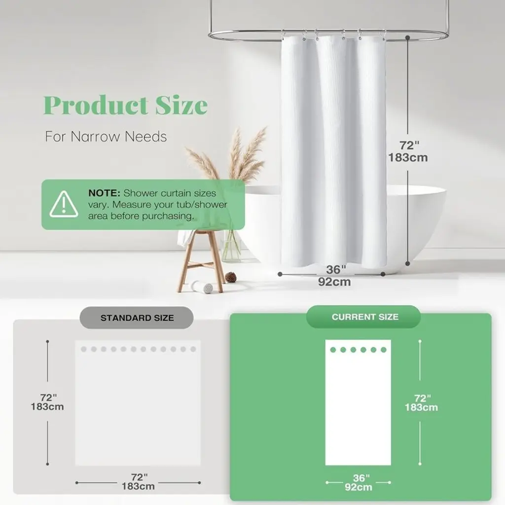 【Dimensions】36W * 72H inch; 256GSM (Gram Per Square Meter), about 1.1 pounds heavier than normal 90GSM fabric shower curtains; 6 rust-resistant grommets that fit most standard shower hooks or rings. Package includes 1 Dark Green Waffle Shower Curtain and 6 Plastic Hooks. And 🚿[Size] 48W*72H inches; 256GSM (grams per square meter), about 1.1 pounds heavier than ordinary 90GSM cloth shower curtains; 8 rust-proof grommets, suitable for most standard shower curtain hooks or shower curtain rings. The set contains 1 waffle shower curtain and 8 plastic hooks.🚿[THICK “COTTON” FABRIC SHOWER CURTAIN】Made of thick polyester fabric that has been professionally selected and tested to feel like cotton. The honeycomb waffle weave pattern adds elegance to your bathroom.So_1F6BF [Hotel Deluxe Spa Grade] “Triple Defense” fabric, ruffles are waterproof, oil-proof and stain-proof. Environmentally friendly and odorless. The hem is designed with heavy-duty counterweight, not easy to wrinkle, excellent light transmission and privacy.So_1F6BF [Elegant Modern Style This waffle shower curtain complements any bathroom - can be used in homes, apartments, condos, hotels, campers, RV's, dorms, school showers, college dorm rooms, athletic clubs, gyms, and anywhere else a reliable shower curtain is needed. Fabric fabric is machine washable and easy to care for.🚿[CUSTOMER SERVICE We are an integrated industry and trade company, dedicated to providing our customers with stylish and high quality products. If the item you receive is damaged in any way, we will replace it with a new one. If you have any questions about our products, please feel free to contact us.