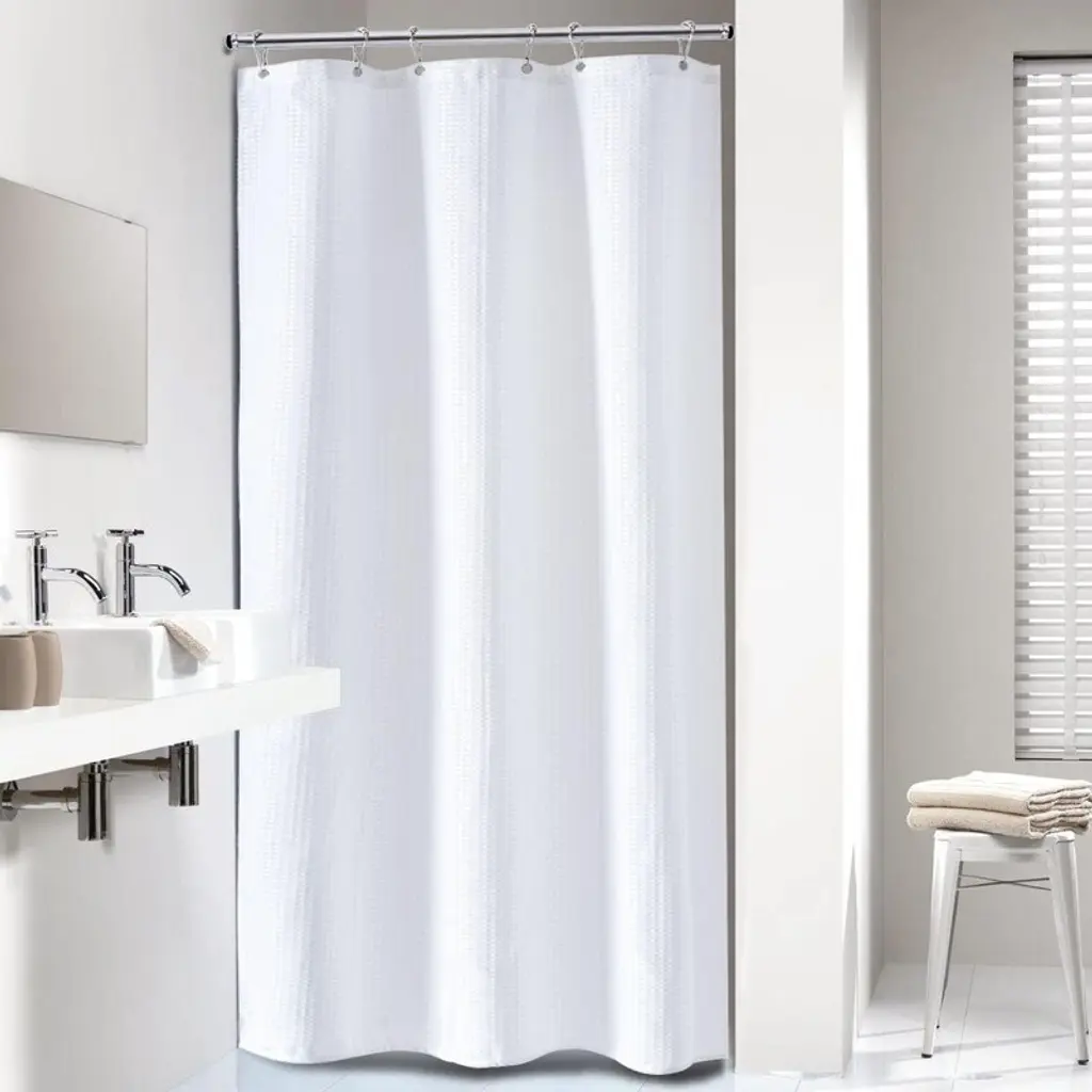 Waffle Textured Heavy Duty Thick Fabric Shower Curtain, Luxury Weighted Polyester Fabric Shower Curtain Set - 36"w X 72"l (Pack Of 1)/white