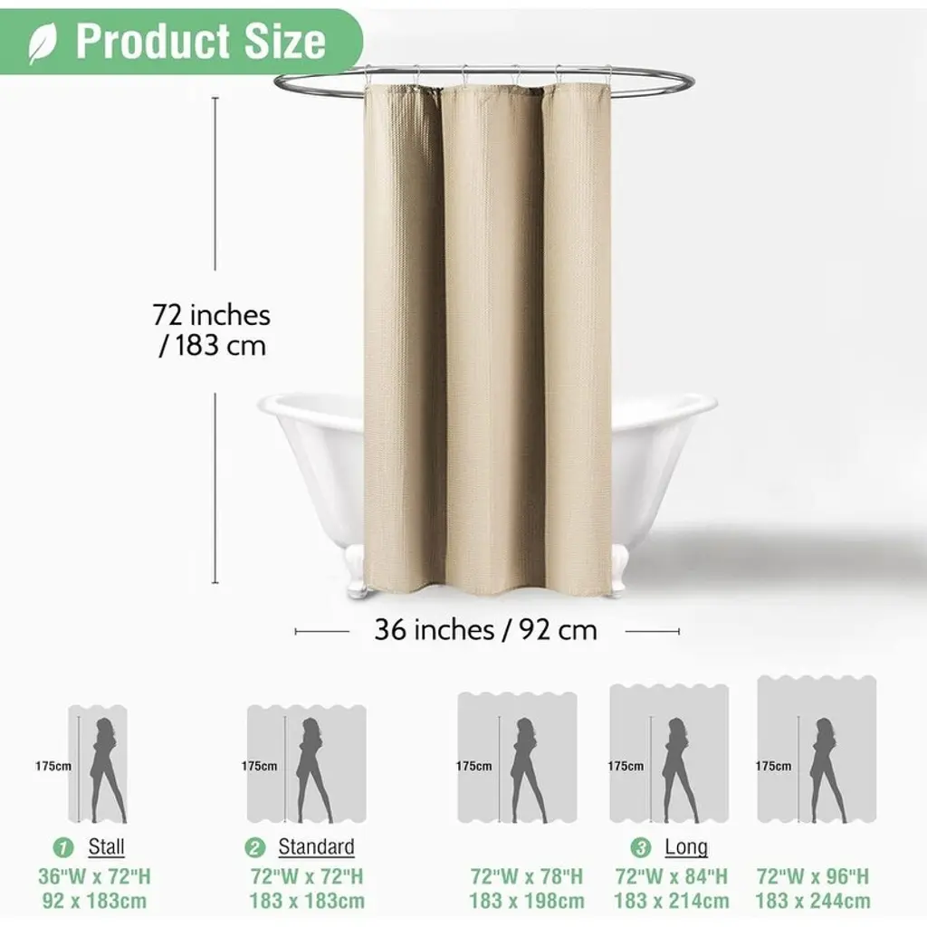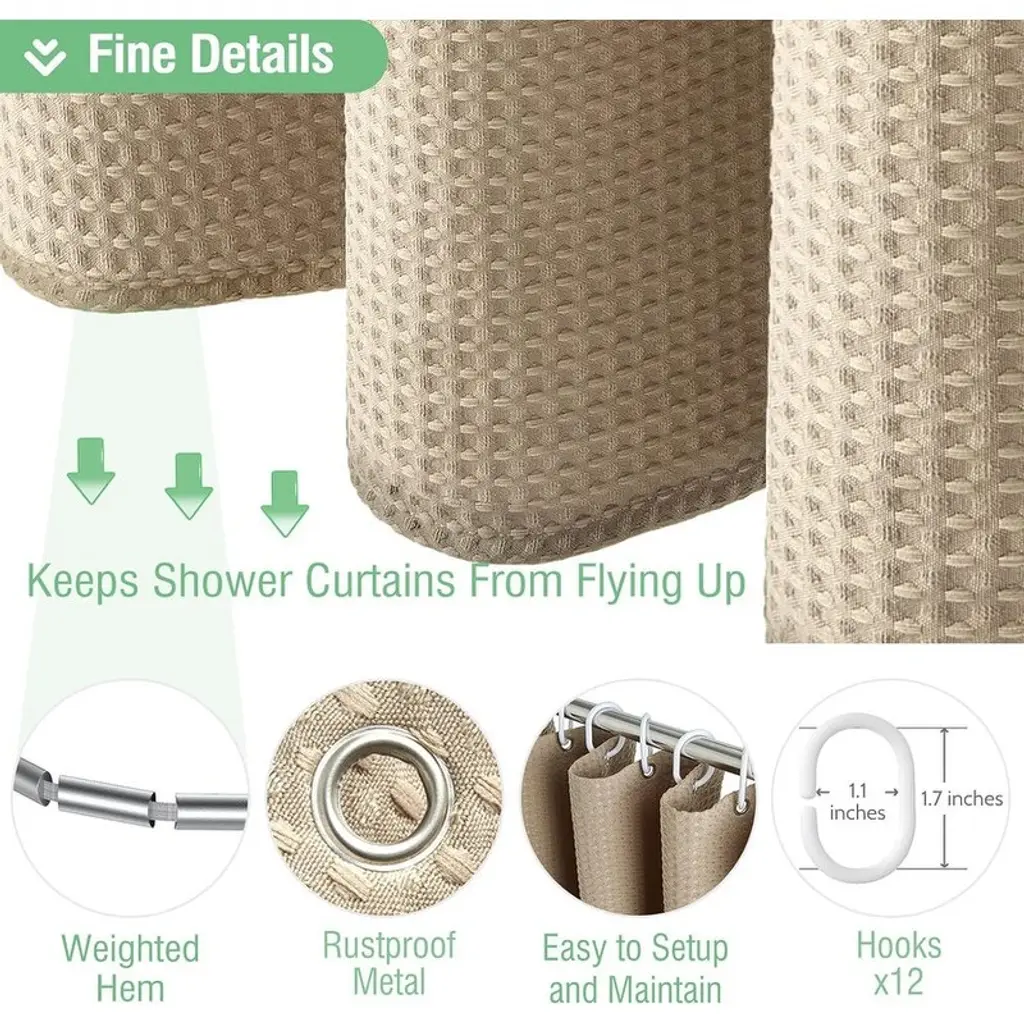 Waffle Textured Heavy Duty Thick Fabric Shower Curtain, Luxury Weighted Polyester Fabric Shower Curtain Set - Beige/36"w X 72"l (Pack Of 1)