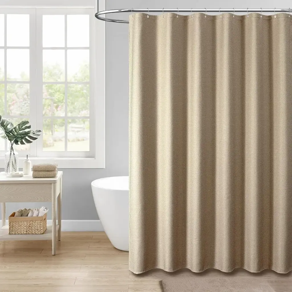 Waffle Textured Heavy Duty Thick Fabric Shower Curtain, Luxury Weighted Polyester Fabric Shower Curtain Set - Beige/khaki