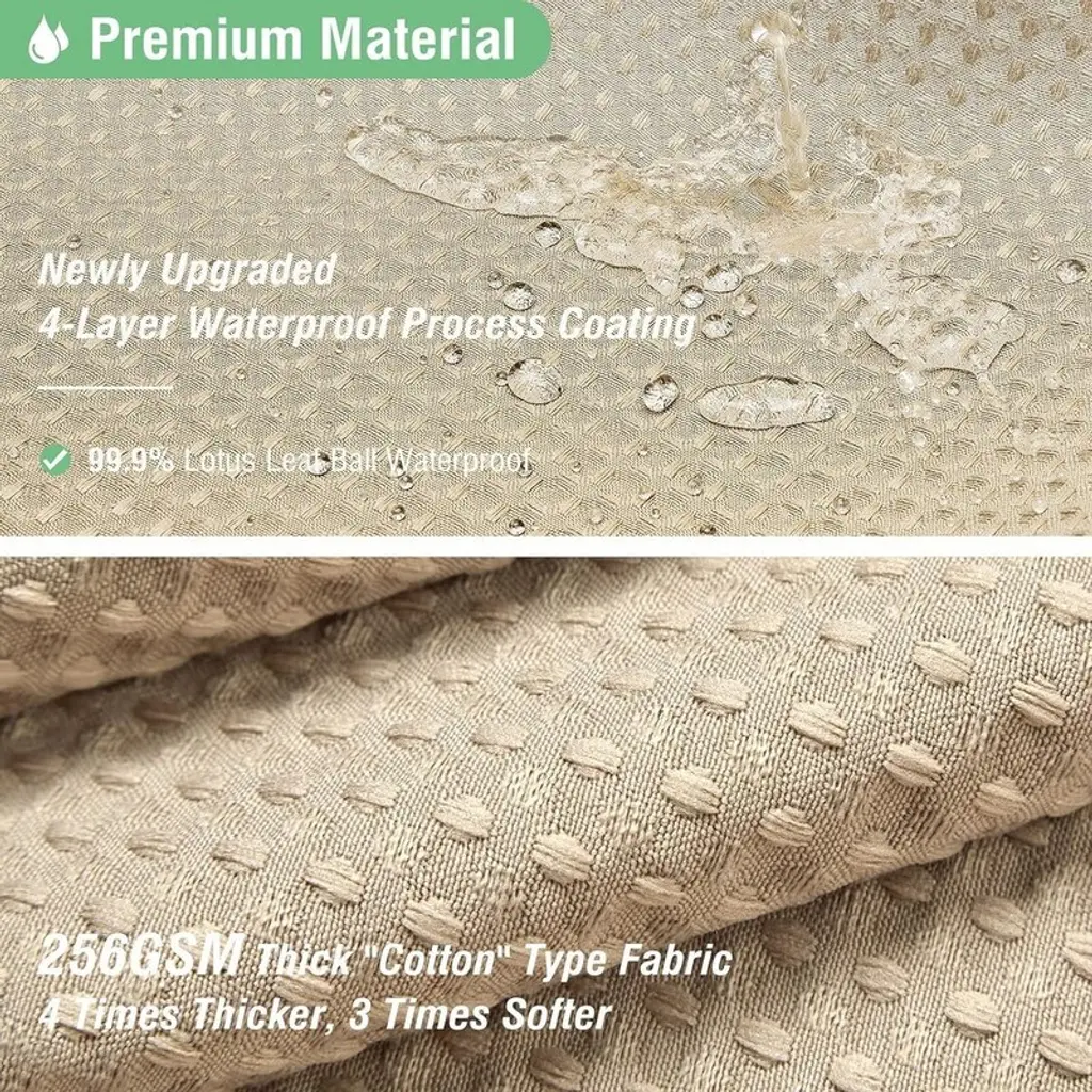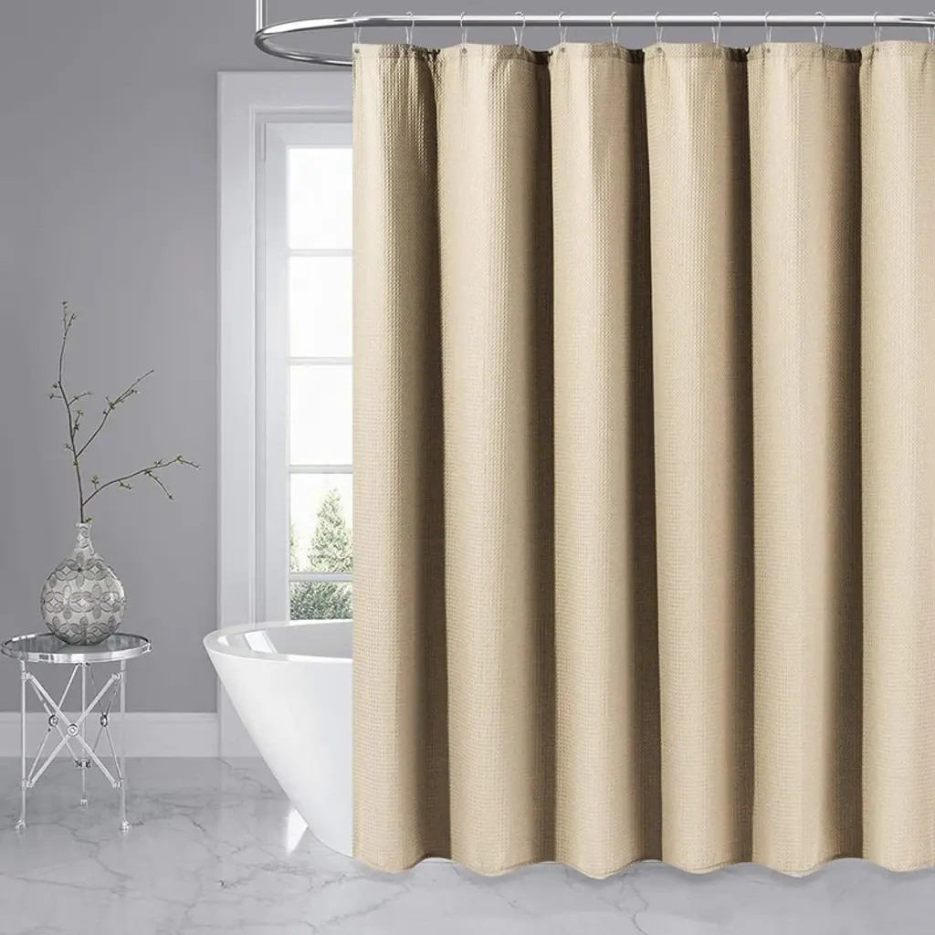 Waffle Textured Heavy Duty Thick Fabric Shower Curtain, Luxury Weighted Polyester Fabric Shower Curtain Set - Beige/khaki