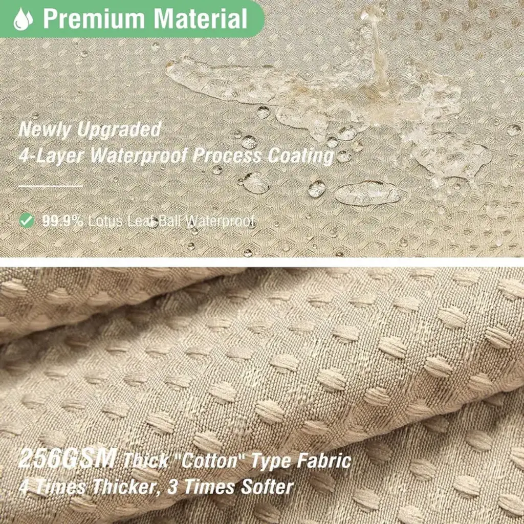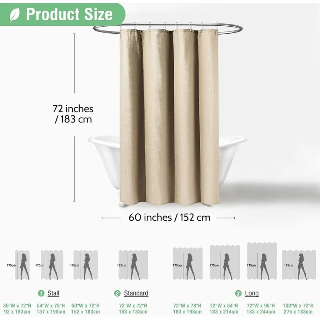 Waffle Textured Heavy Duty Thick Fabric Shower Curtain, Luxury Weighted Polyester Fabric Shower Curtain Set - Beige/khaki