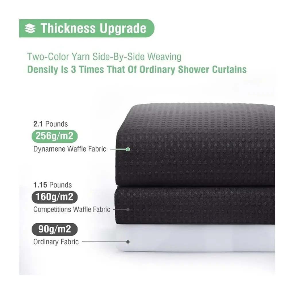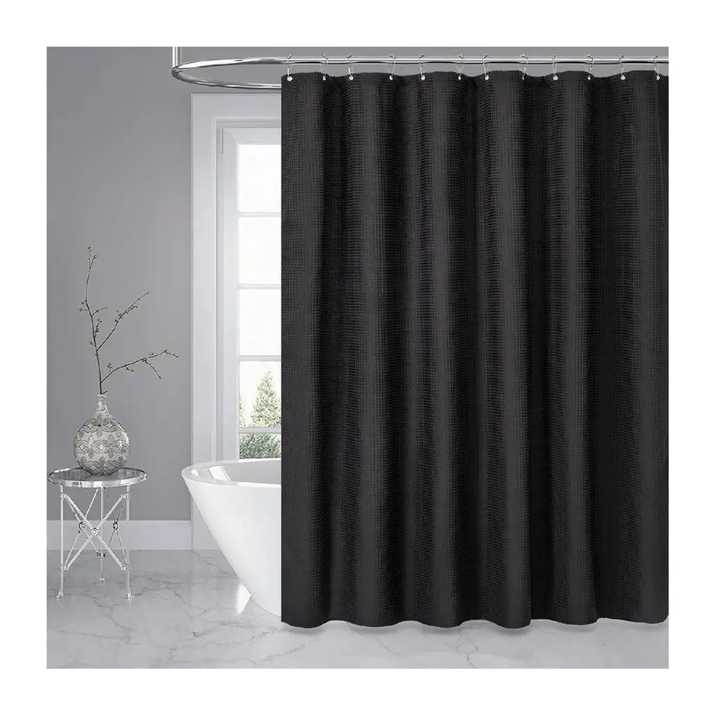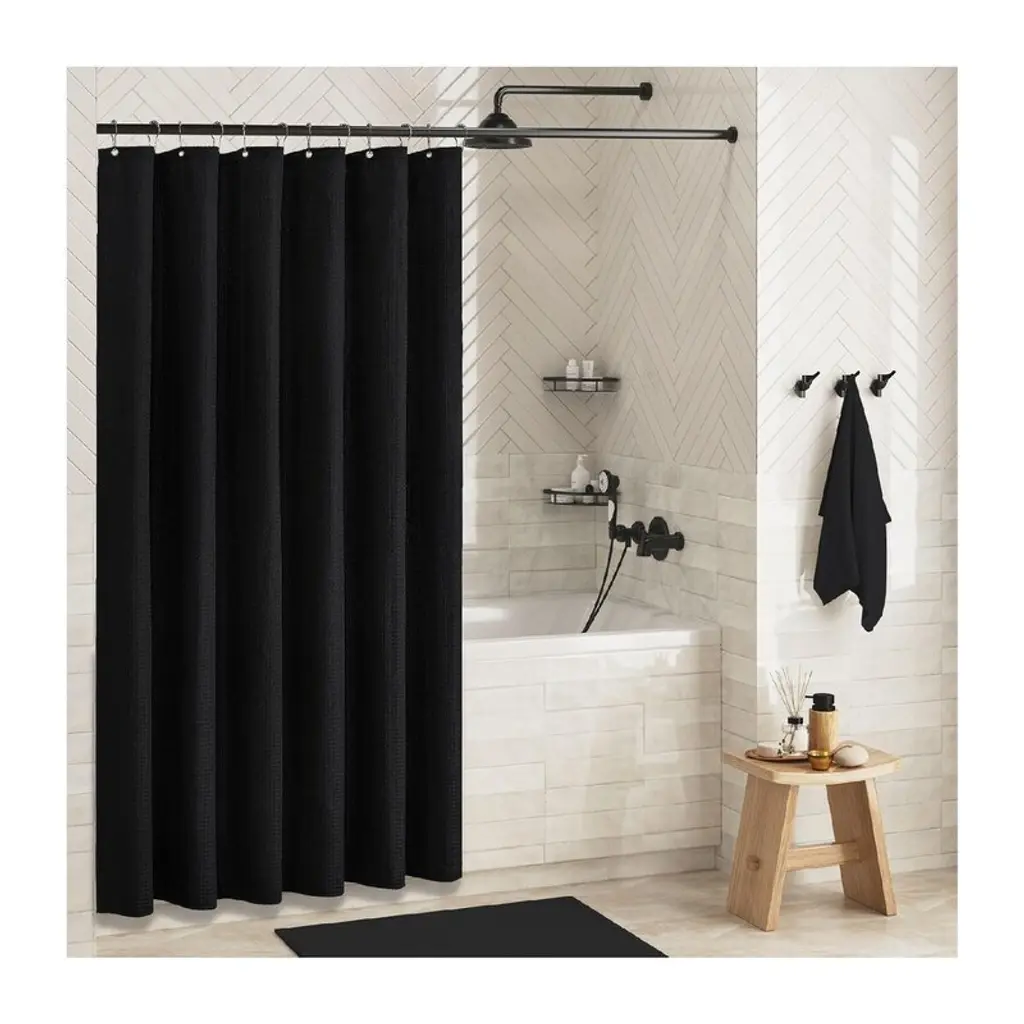 Waffle Textured Heavy Duty Thick Fabric Shower Curtain, Luxury Weighted Polyester Fabric Shower Curtain Set - Black