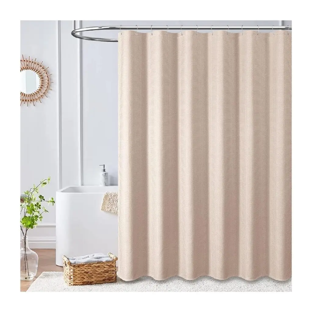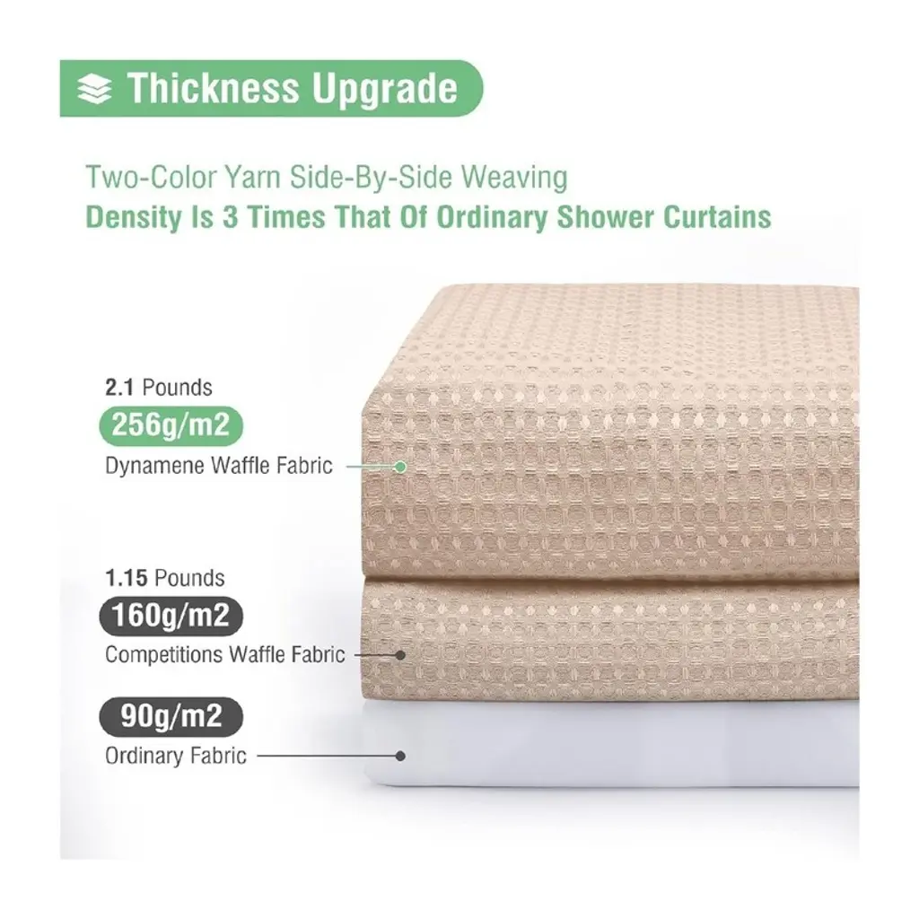 🚿[Size 72W * 72H inches (183W * 183H cm); 256GSM (grams per square meter), about 1.1 pounds heavier than a regular 90GSM fabric shower curtain; 12 rust-resistant grommets, fits most standard shower hooks or rings. Package includes 1 green waffle shower curtain and 12 plastic hooks.🚿[THICK “COTTON” FABRIC SHOWER CURTAIN】Made of thick polyester fabric that has been professionally selected and tested to feel like cotton. The honeycomb waffle weave pattern adds elegance to your bathroom.So_1F6BF [Hotel Deluxe Spa Grade] “Triple Defense” fabric, ruffles are waterproof, oil-proof and stain-proof. Environmentally friendly and odorless. The hem is designed with heavy-duty counterweight, not easy to wrinkle, excellent light transmission and privacy.So_1F6BF [Elegant Modern Style This waffle shower curtain complements any bathroom - can be used in homes, apartments, condos, hotels, campers, RV's, dorms, school showers, college dorm rooms, athletic clubs, gyms, and anywhere else a reliable shower curtain is needed. Fabric fabric is machine washable and easy to care for.🚿[CUSTOMER SERVICE We are an integrated industry and trade company, dedicated to providing our customers with stylish and high quality products. If the item you receive is damaged in any way, we will replace it with a new one. If you have any questions about our products, please feel free to contact us.