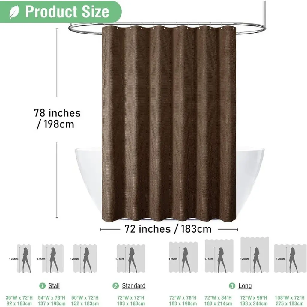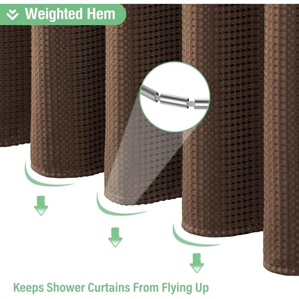 Waffle Textured Heavy Duty Thick Fabric Shower Curtain, Luxury Weighted Polyester Fabric Shower Curtain Set - Brown