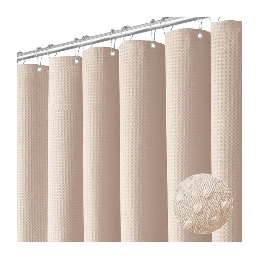 🚿[Size 72W * 72H inches (183W * 183H cm); 256GSM (grams per square meter), about 1.1 pounds heavier than a regular 90GSM fabric shower curtain; 12 rust-resistant grommets, fits most standard shower hooks or rings. Package includes 1 green waffle shower curtain and 12 plastic hooks.🚿[THICK “COTTON” FABRIC SHOWER CURTAIN】Made of thick polyester fabric that has been professionally selected and tested to feel like cotton. The honeycomb waffle weave pattern adds elegance to your bathroom.So_1F6BF [Hotel Deluxe Spa Grade] “Triple Defense” fabric, ruffles are waterproof, oil-proof and stain-proof. Environmentally friendly and odorless. The hem is designed with heavy-duty counterweight, not easy to wrinkle, excellent light transmission and privacy.So_1F6BF [Elegant Modern Style This waffle shower curtain complements any bathroom - can be used in homes, apartments, condos, hotels, campers, RV's, dorms, school showers, college dorm rooms, athletic clubs, gyms, and anywhere else a reliable shower curtain is needed. Fabric fabric is machine washable and easy to care for.🚿[CUSTOMER SERVICE We are an integrated industry and trade company, dedicated to providing our customers with stylish and high quality products. If the item you receive is damaged in any way, we will replace it with a new one. If you have any questions about our products, please feel free to contact us.
