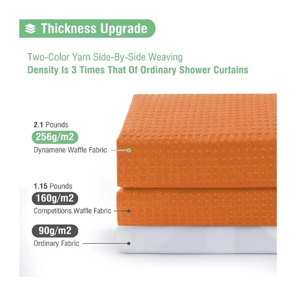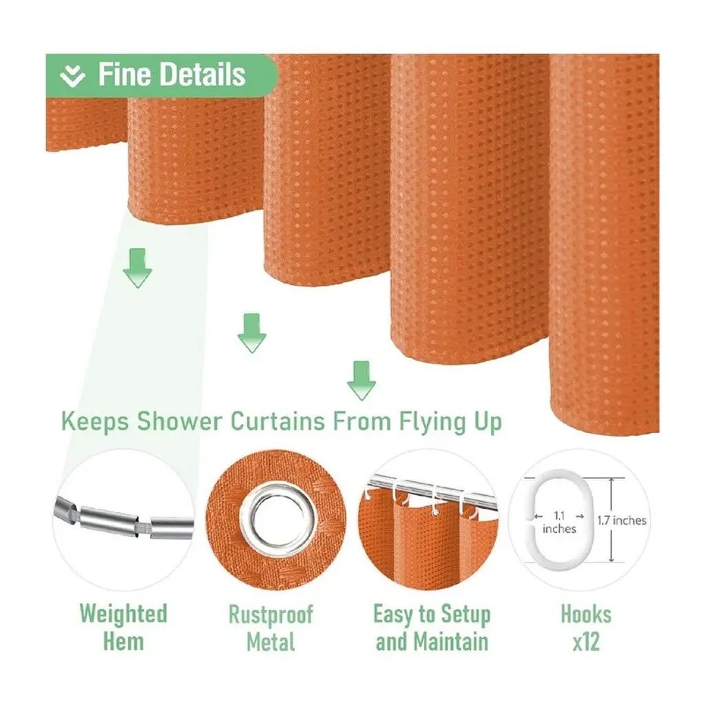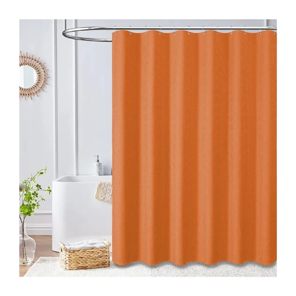 Waffle Textured Heavy Duty Thick Fabric Shower Curtain, Luxury Weighted Polyester Fabric Shower Curtain Set - Burnt Orange