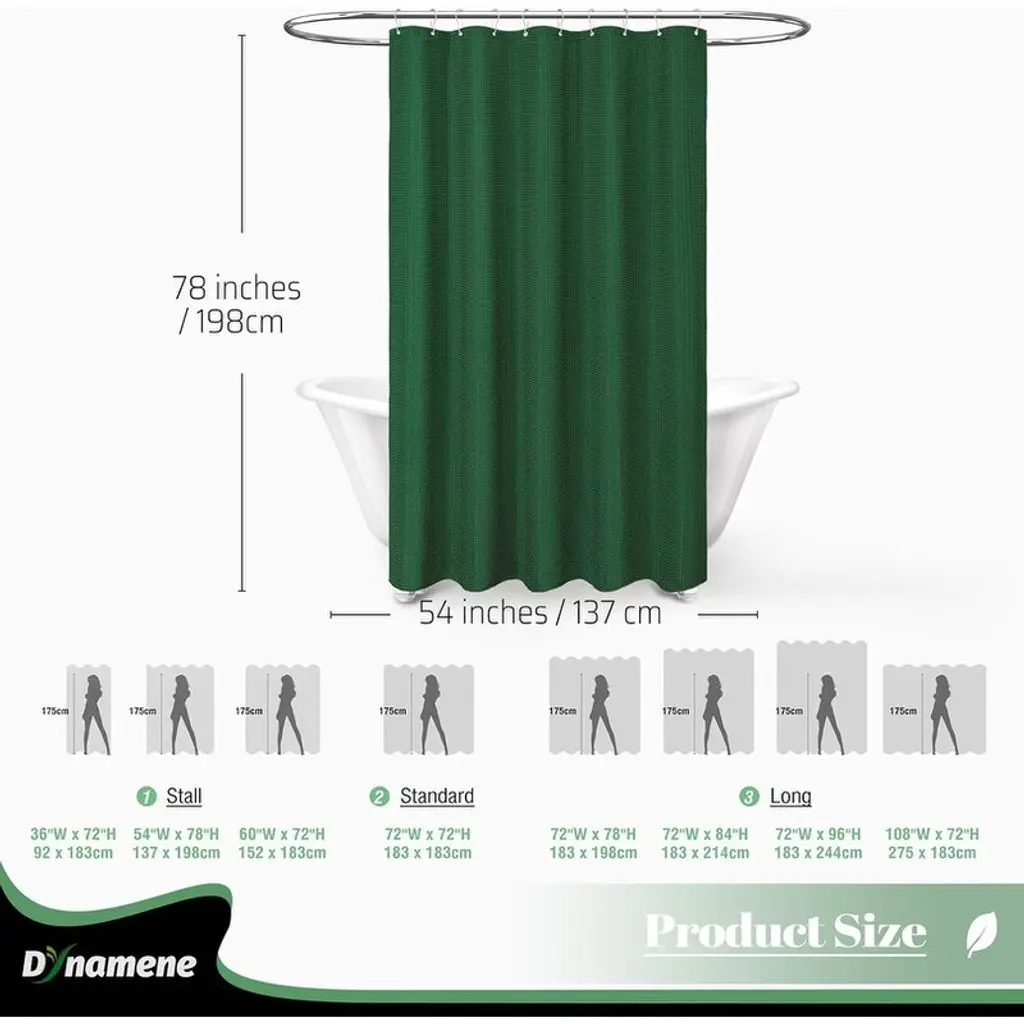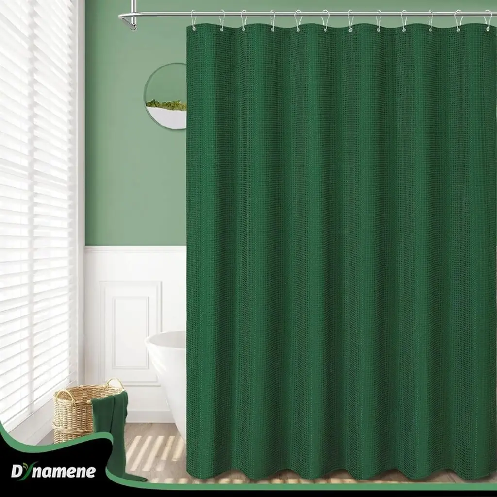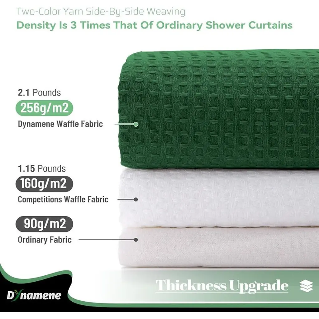 Waffle Textured Heavy Duty Thick Fabric Shower Curtain, Luxury Weighted Polyester Fabric Shower Curtain Set - Dark Green