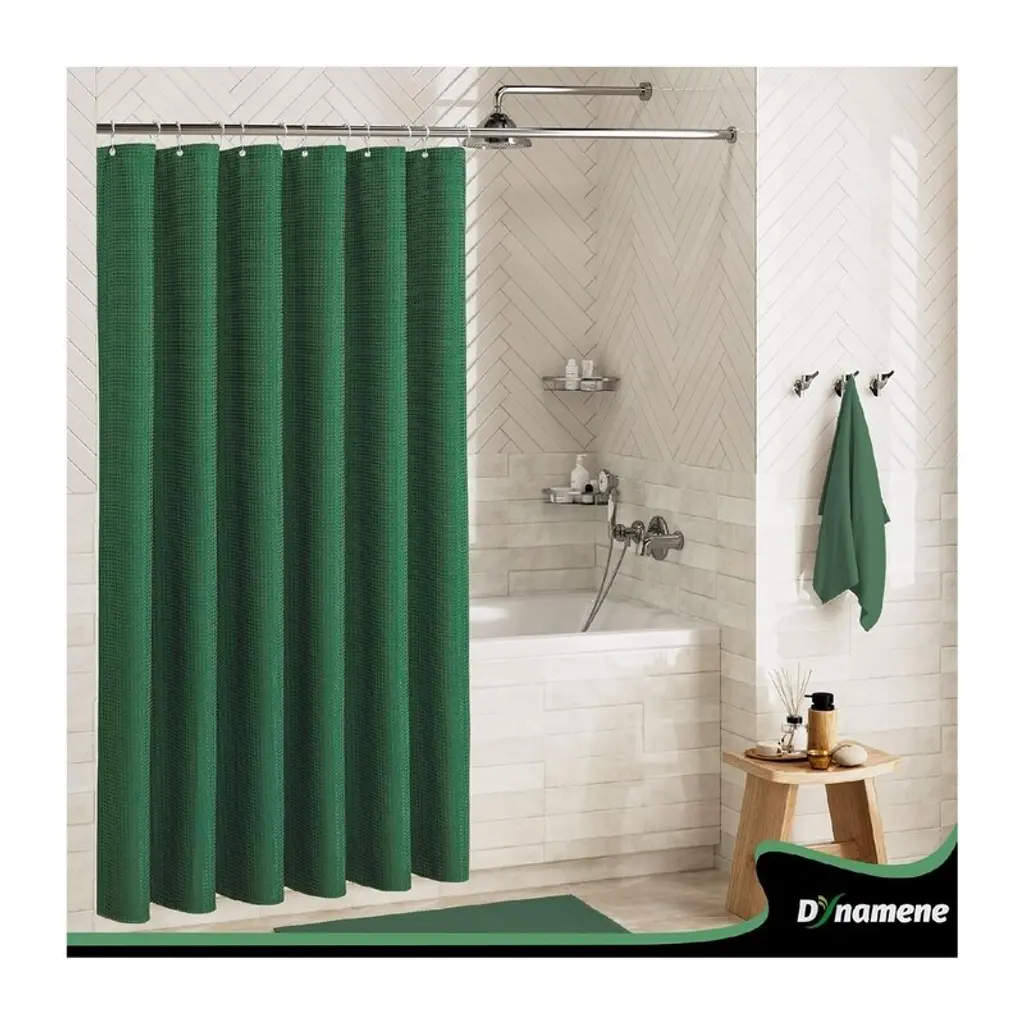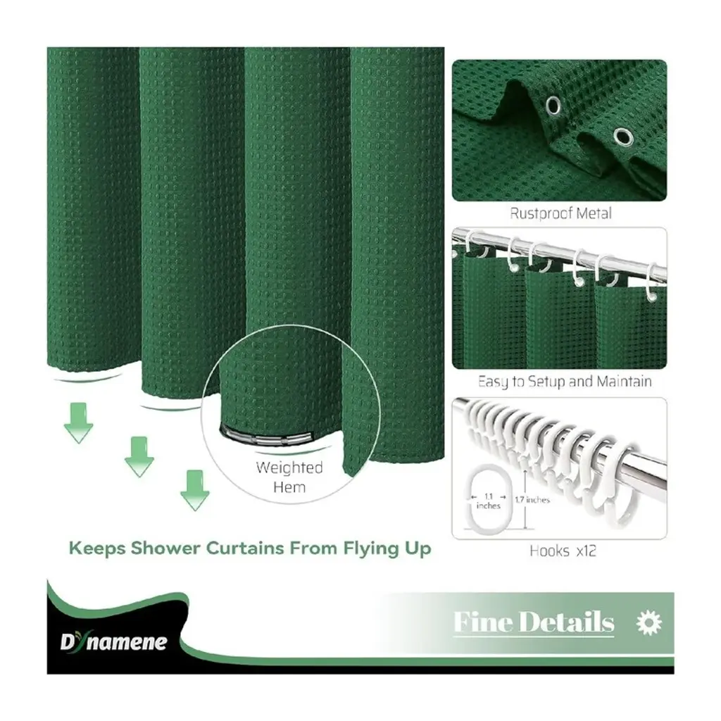Waffle Textured Heavy Duty Thick Fabric Shower Curtain, Luxury Weighted Polyester Fabric Shower Curtain Set - Dark Green
