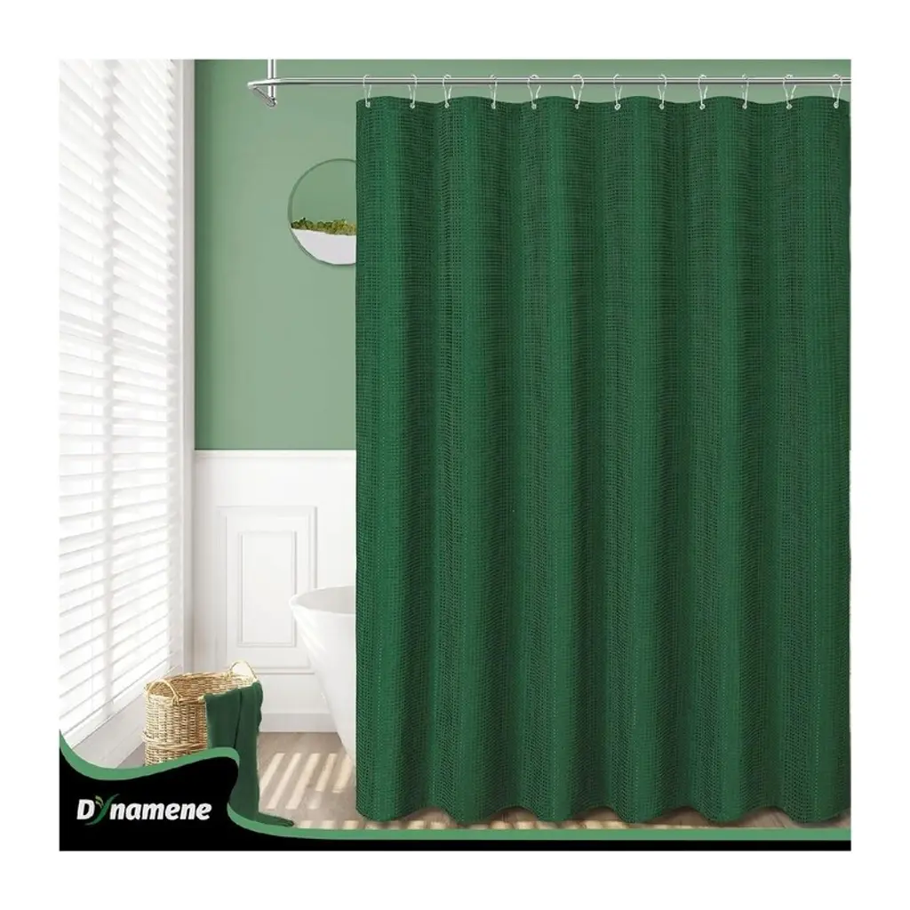 🚿[Size 72W * 72H inches (183W * 183H cm); 256GSM (grams per square meter), about 1.1 pounds heavier than a regular 90GSM fabric shower curtain; 12 rust-resistant grommets, fits most standard shower hooks or rings. Package includes 1 green waffle shower curtain and 12 plastic hooks.🚿[THICK “COTTON” FABRIC SHOWER CURTAIN】Made of thick polyester fabric that has been professionally selected and tested to feel like cotton. The honeycomb waffle weave pattern adds elegance to your bathroom.So_1F6BF [Hotel Deluxe Spa Grade] “Triple Defense” fabric, ruffles are waterproof, oil-proof and stain-proof. Environmentally friendly and odorless. The hem is designed with heavy-duty counterweight, not easy to wrinkle, excellent light transmission and privacy.So_1F6BF [Elegant Modern Style This waffle shower curtain complements any bathroom - can be used in homes, apartments, condos, hotels, campers, RV's, dorms, school showers, college dorm rooms, athletic clubs, gyms, and anywhere else a reliable shower curtain is needed. Fabric fabric is machine washable and easy to care for.🚿[CUSTOMER SERVICE We are an integrated industry and trade company, dedicated to providing our customers with stylish and high quality products. If the item you receive is damaged in any way, we will replace it with a new one. If you have any questions about our products, please feel free to contact us.