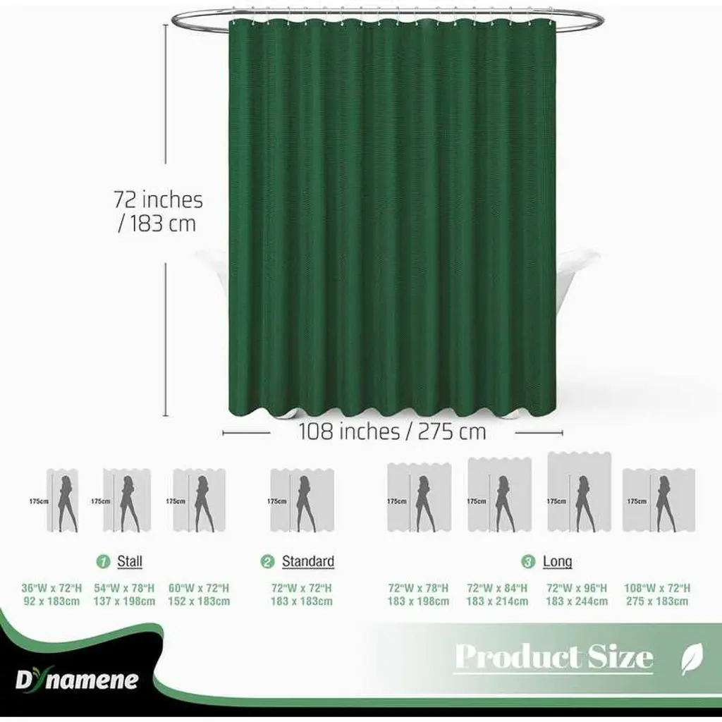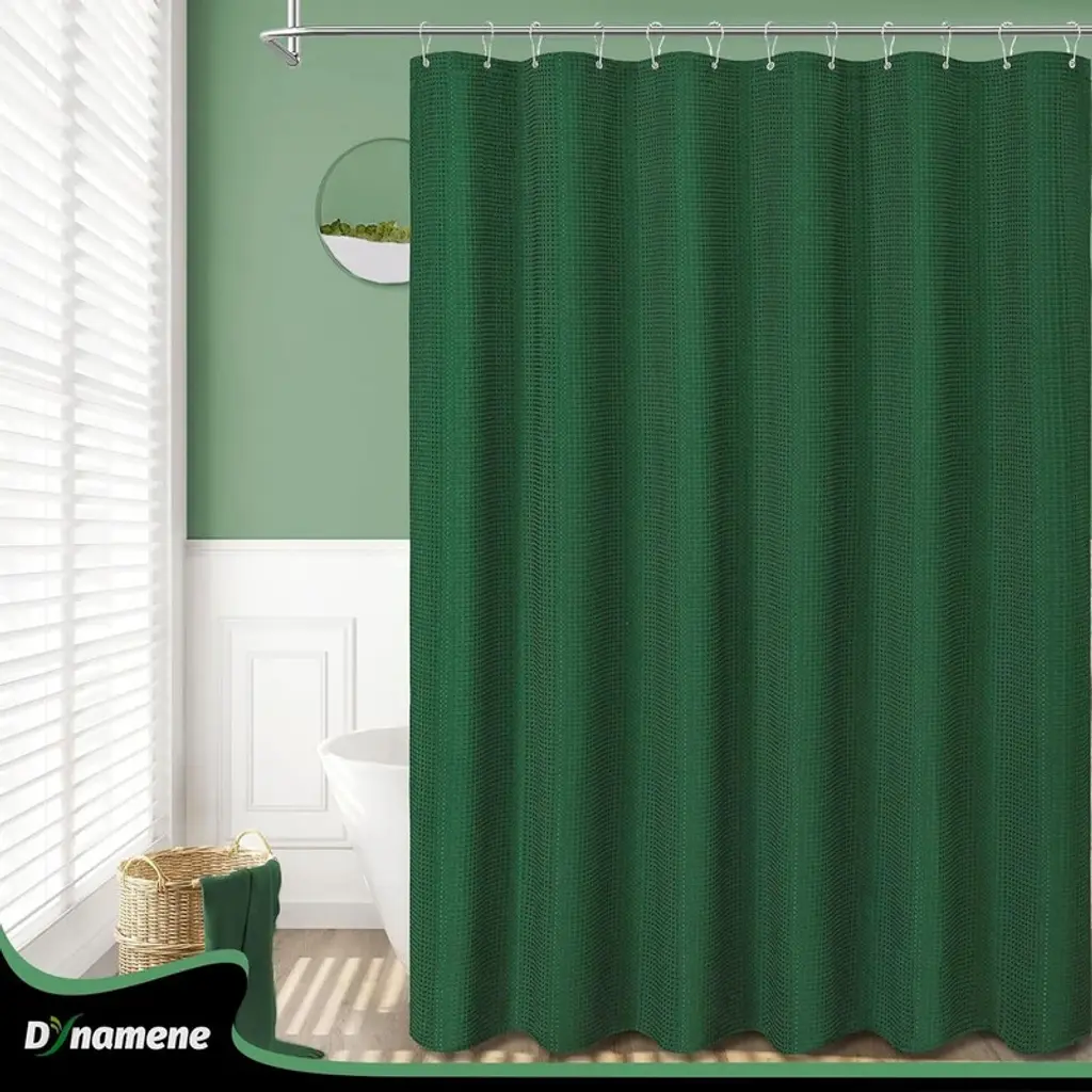 Waffle Textured Heavy Duty Thick Fabric Shower Curtain, Luxury Weighted Polyester Fabric Shower Curtain Set - Dark Green