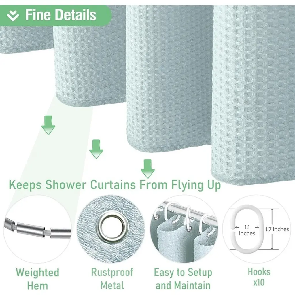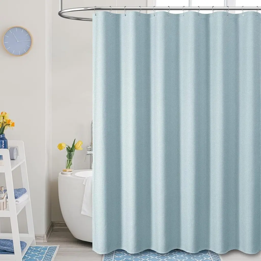 Waffle Textured Heavy Duty Thick Fabric Shower Curtain, Luxury Weighted Polyester Fabric Shower Curtain Set - Fog Blue
