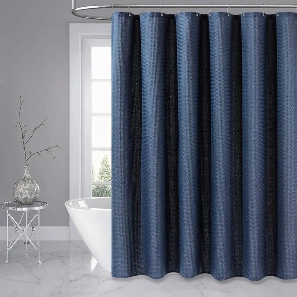 Waffle Textured Heavy Duty Thick Fabric Shower Curtain, Luxury Weighted Polyester Fabric Shower Curtain Set - Navy Blue