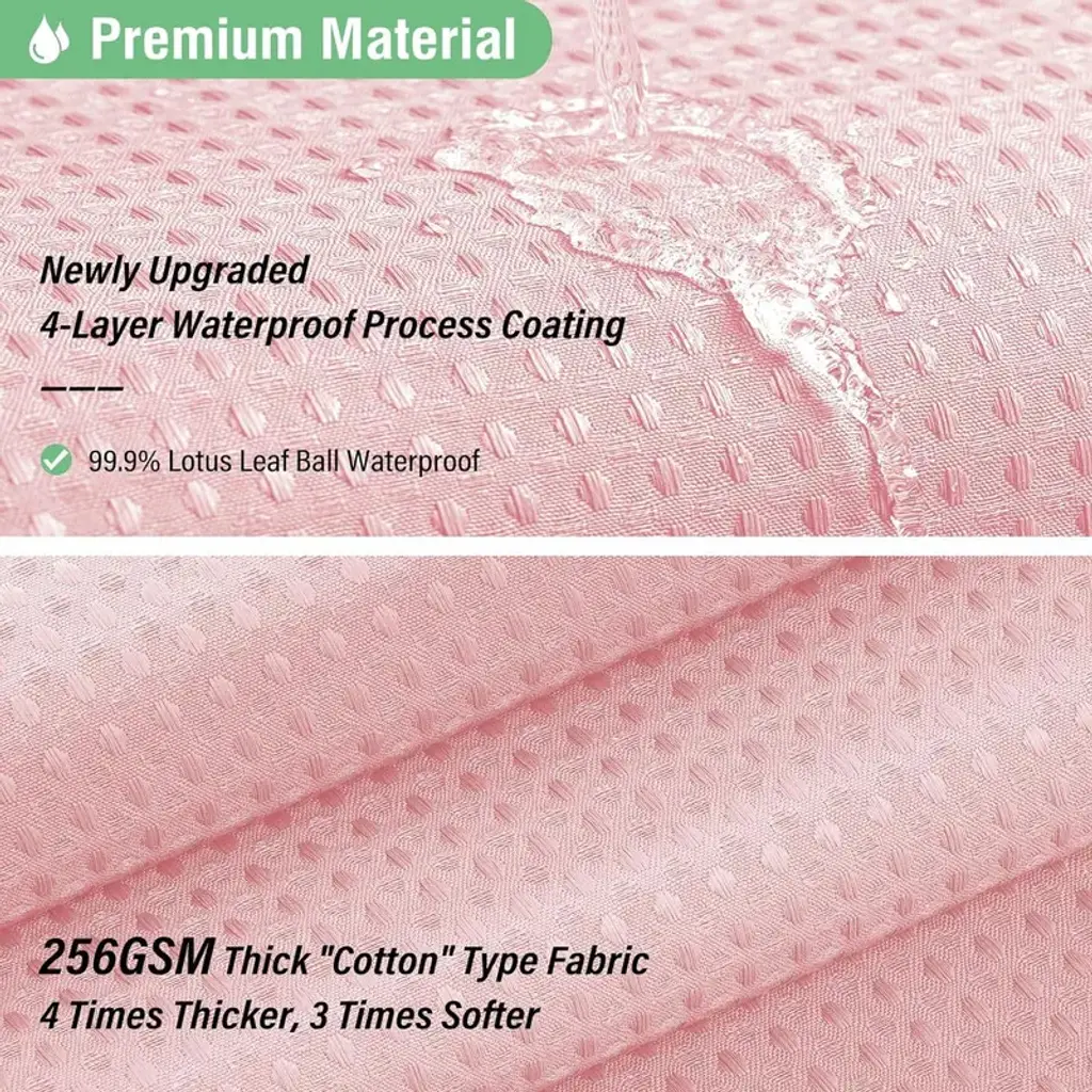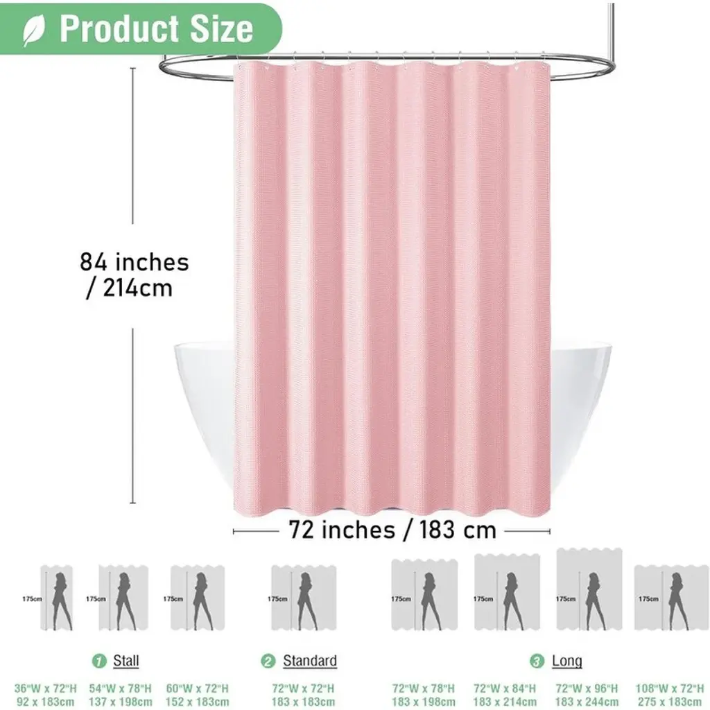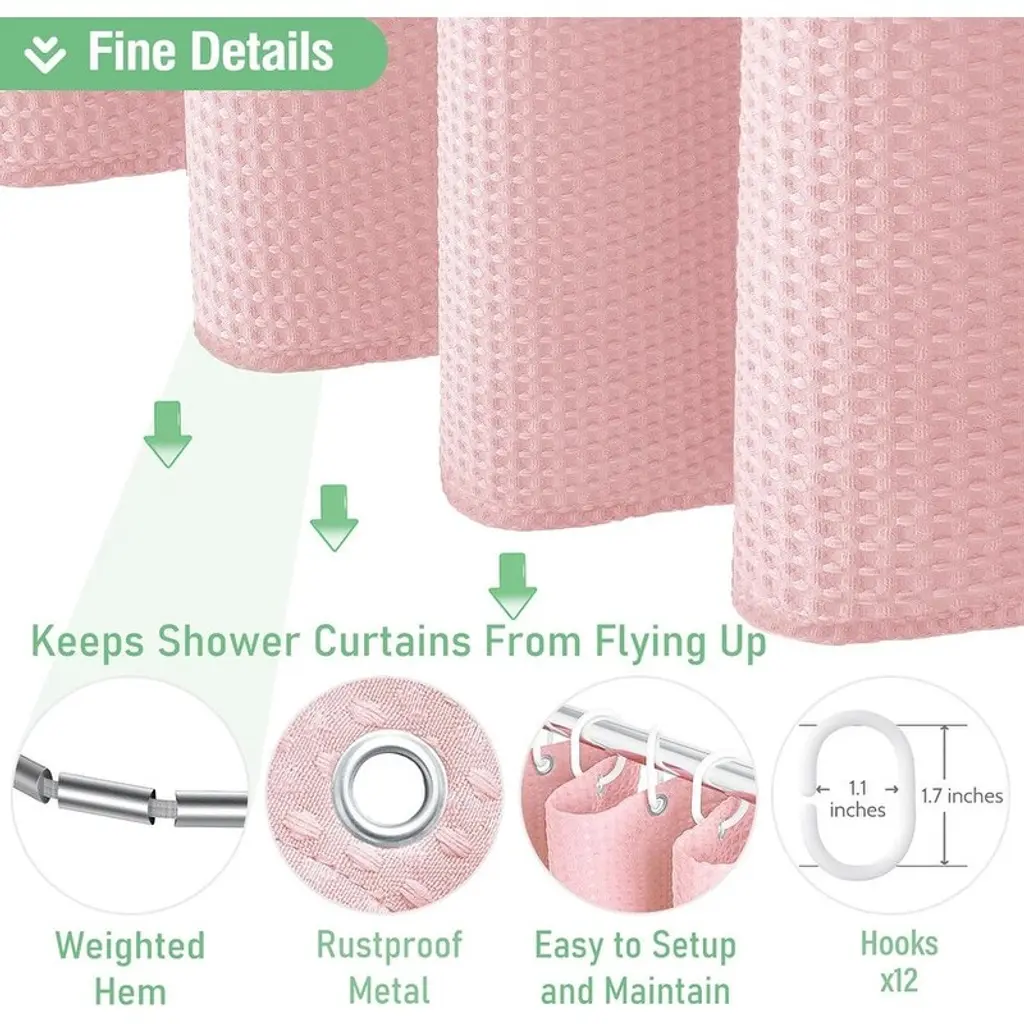 Waffle Textured Heavy Duty Thick Fabric Shower Curtain, Luxury Weighted Polyester Fabric Shower Curtain Set - Pink