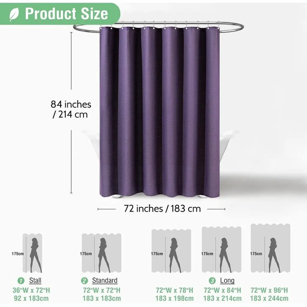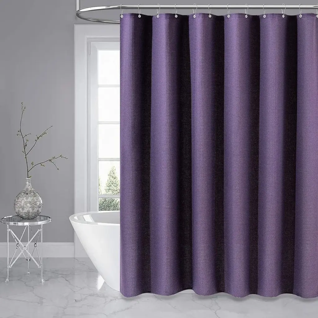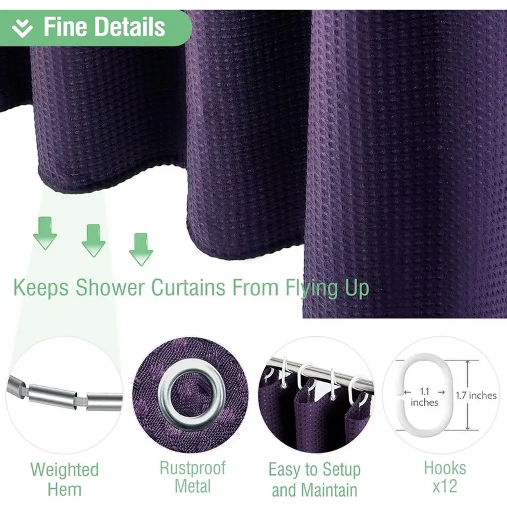 Waffle Textured Heavy Duty Thick Fabric Shower Curtain, Luxury Weighted Polyester Fabric Shower Curtain Set - Purple
