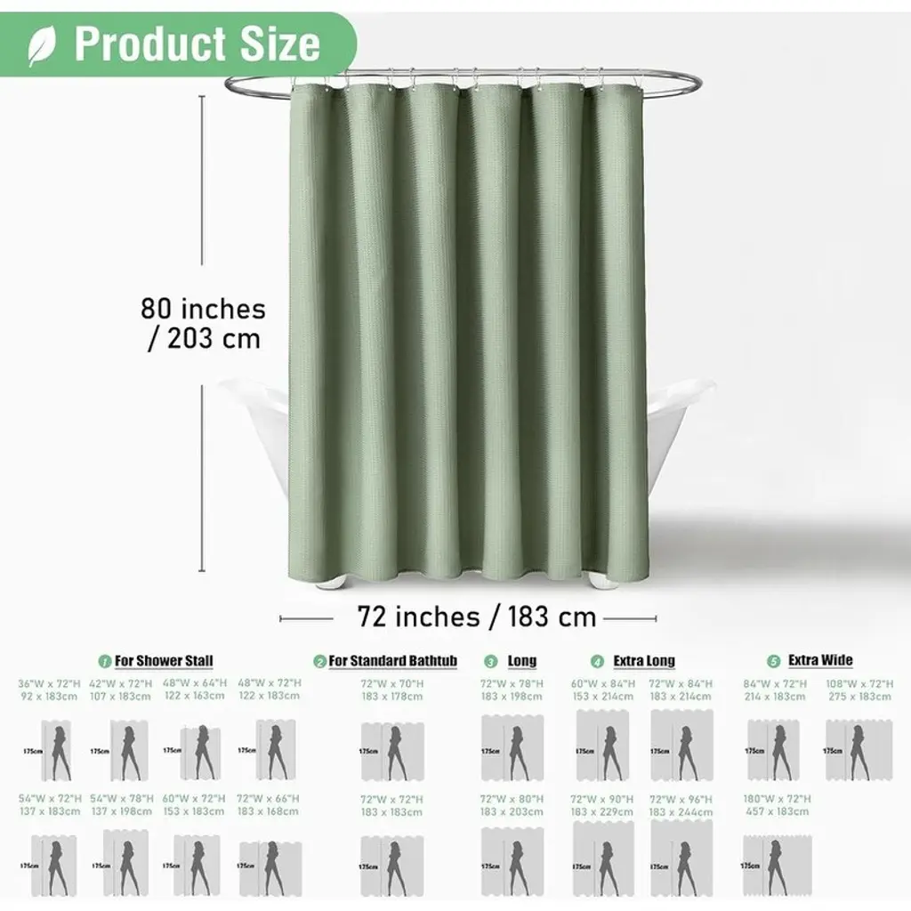 Waffle Textured Heavy Duty Thick Fabric Shower Curtain, Luxury Weighted Polyester Fabric Shower Curtain Set - Sage Green