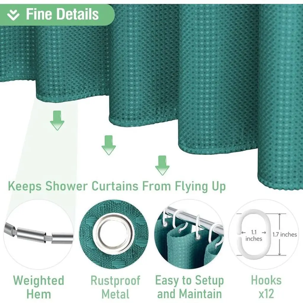 Waffle Textured Heavy Duty Thick Fabric Shower Curtain, Luxury Weighted Polyester Fabric Shower Curtain Set - Seaweed Green