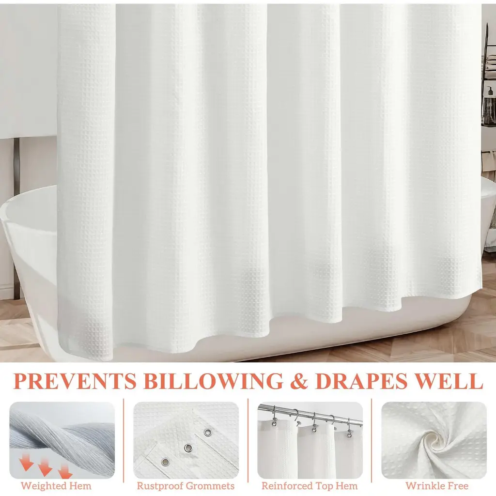 Waffle Weave White Shower Curtain, Hotel Luxury, 71"x72"