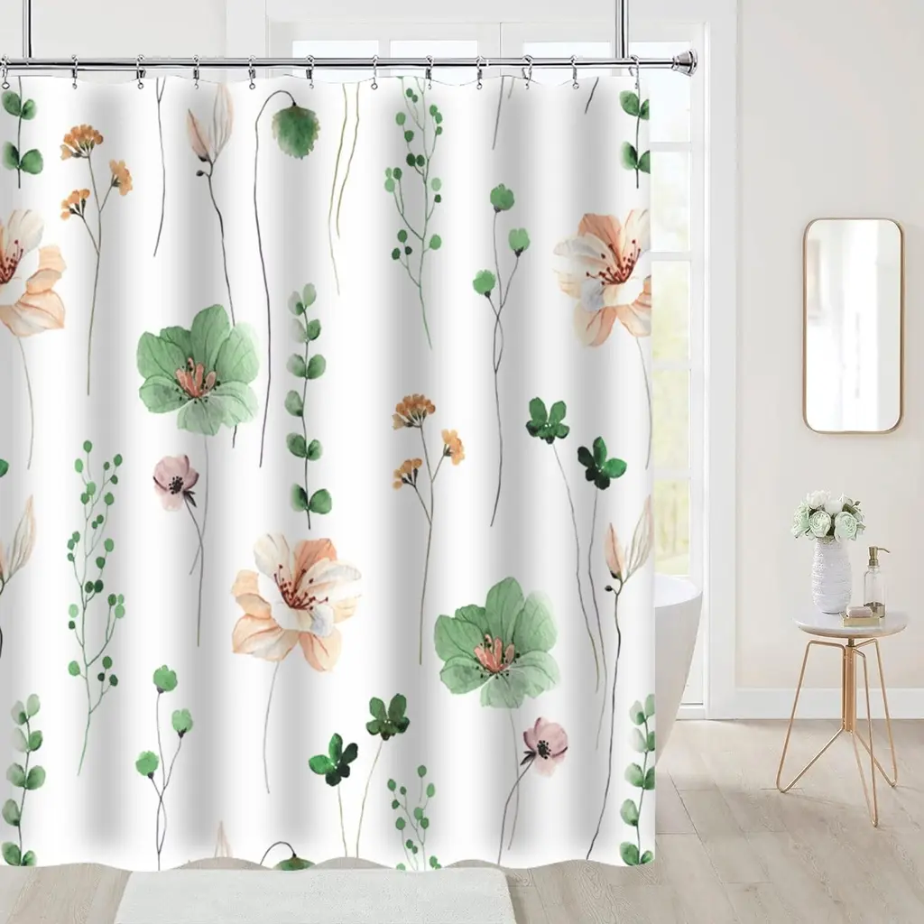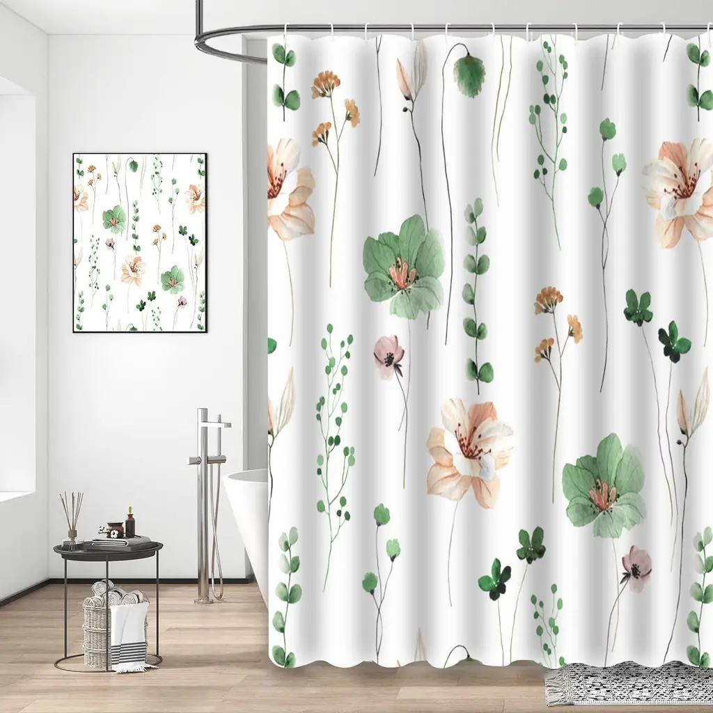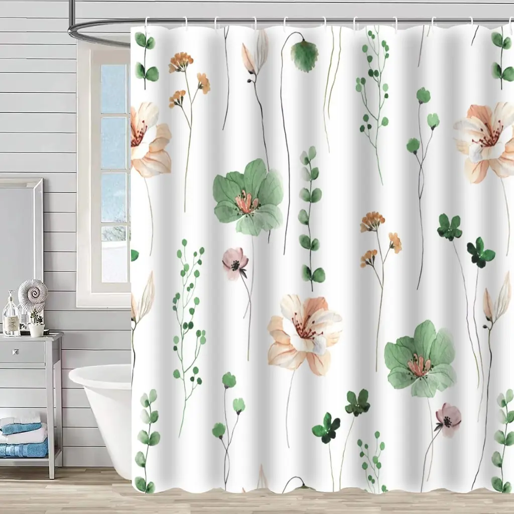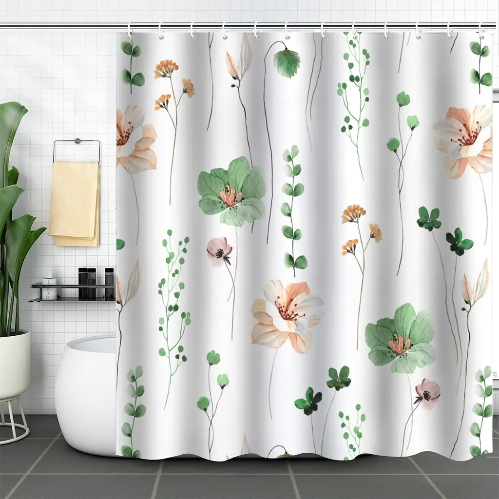 Watercolor Floral Shower Curtain, 72"x72", Sage Green, Waterproof - Multicolor