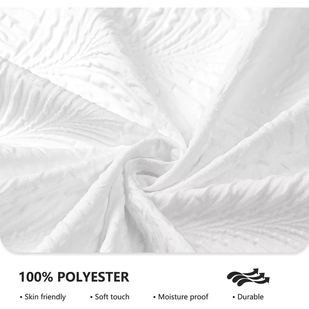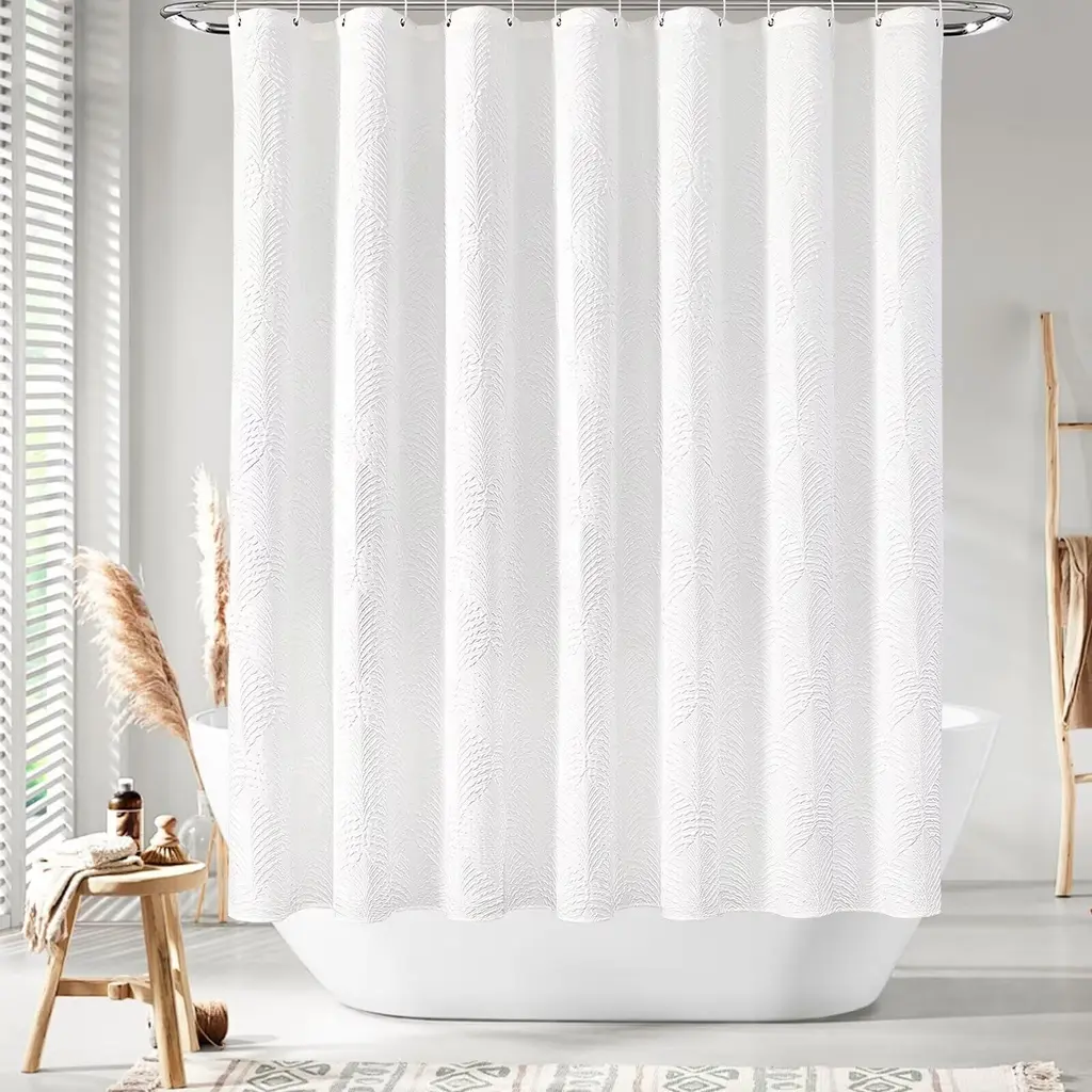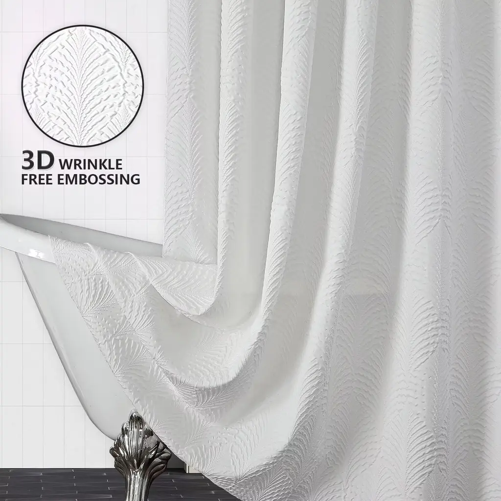 White 3D Embossed Shower Curtain, 72"x72", Textured Leaves, Waterproof