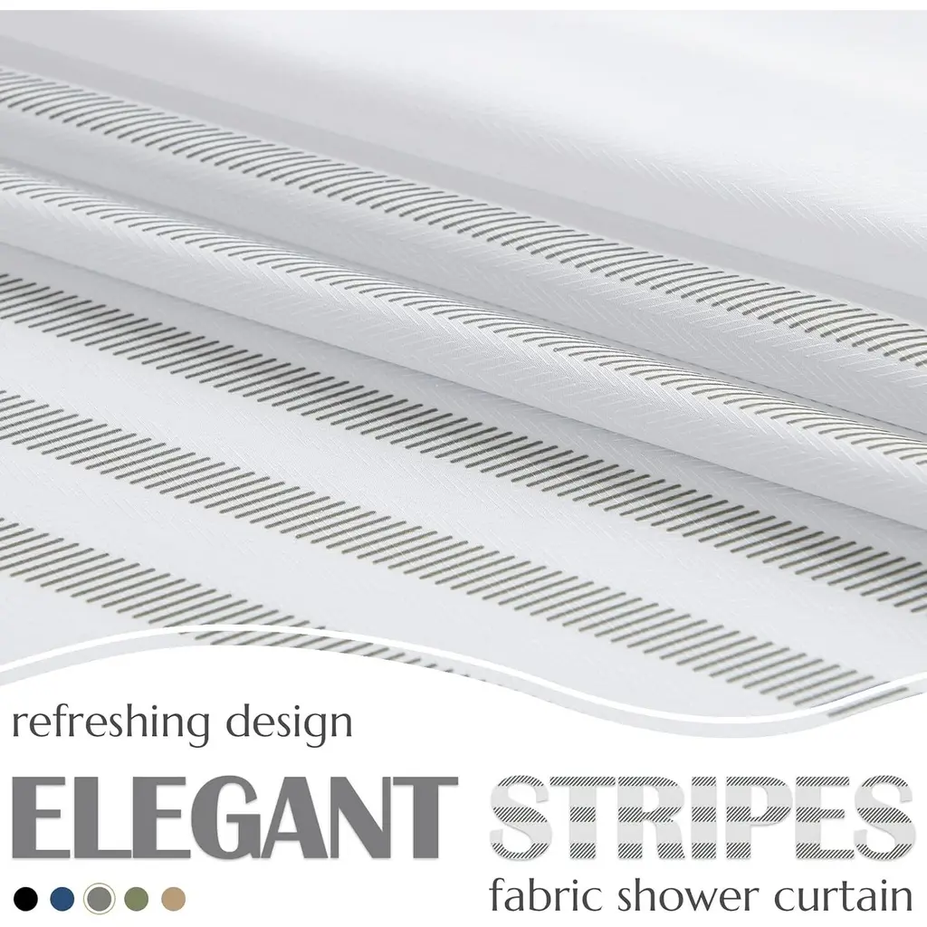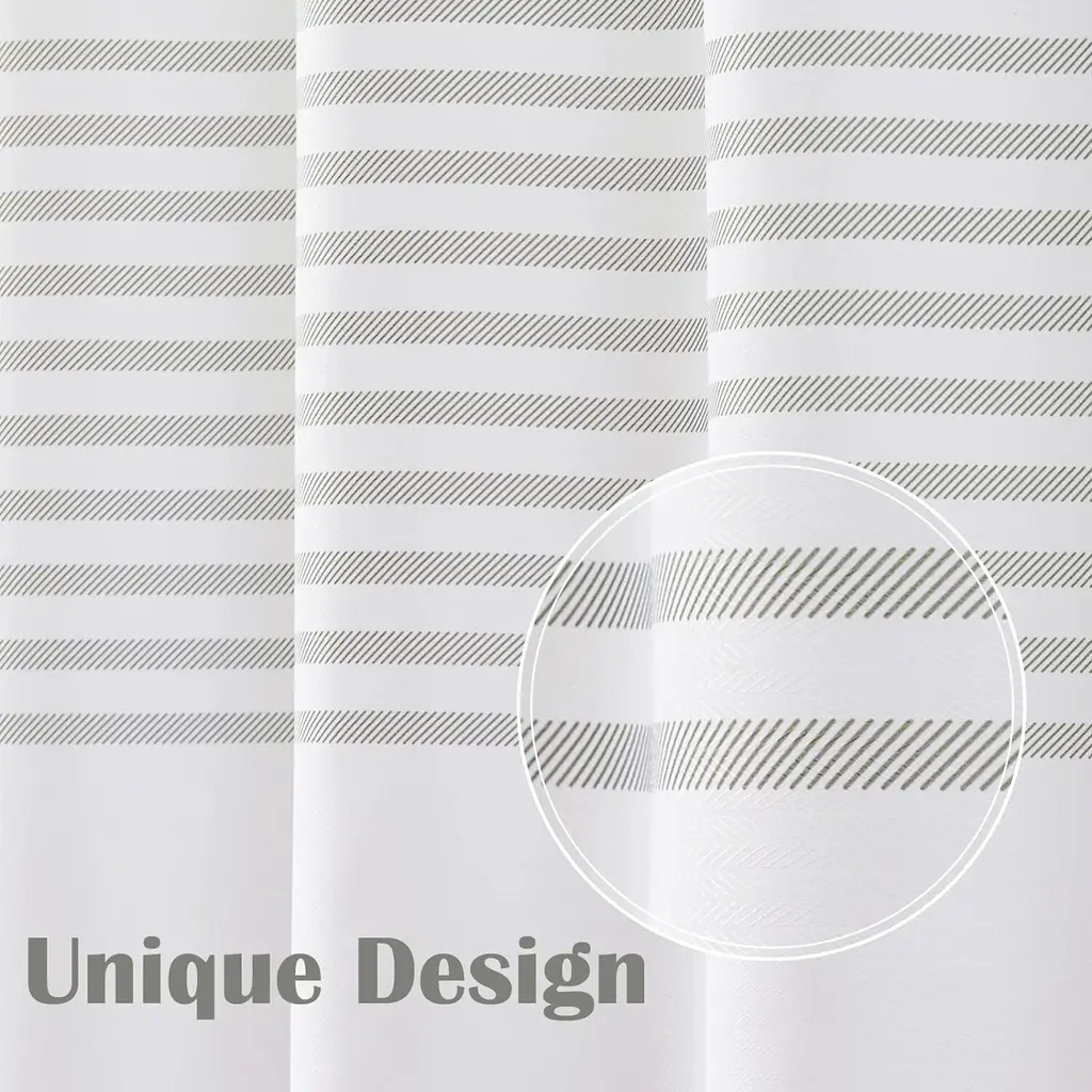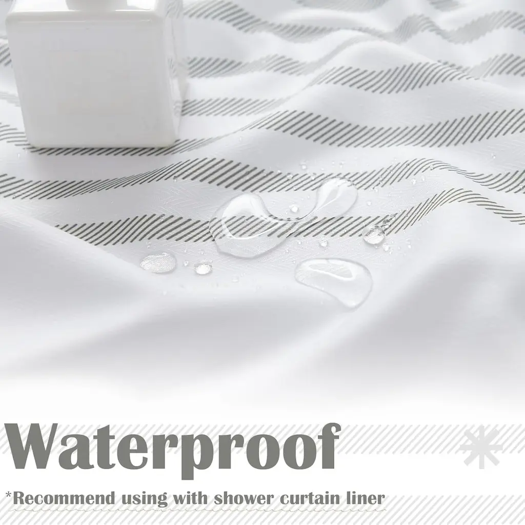 White & Gray Striped Shower Curtain, Waterproof, 70W x 72H Inch
