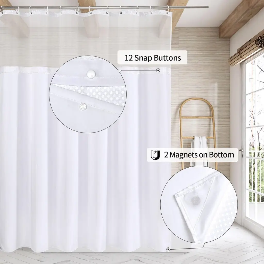 White Waffle Shower Curtain Set with Snap-in Liner, 72 x 72