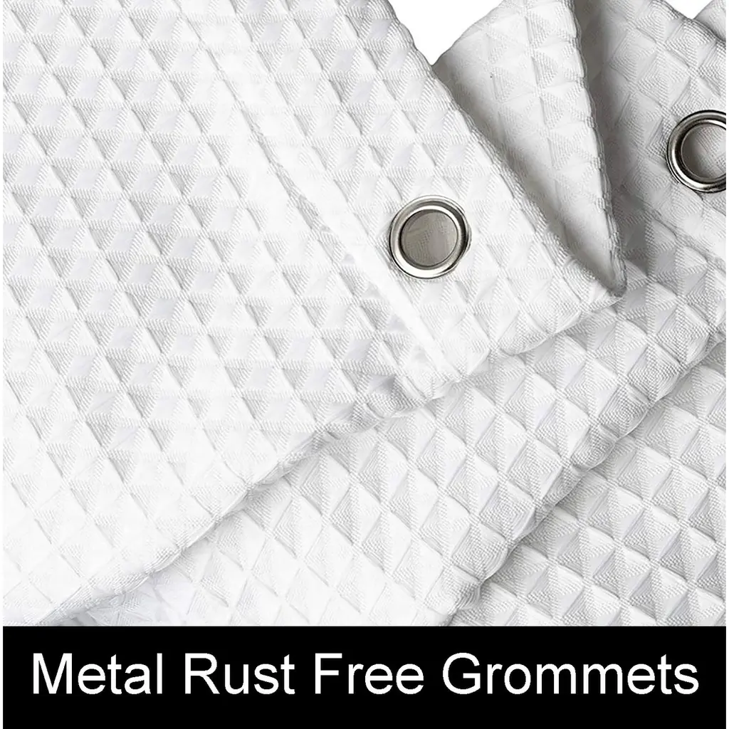 White Waffle Weave Geometric Washable Thick Fabric Shower Curtain - 70" X 72" - 70" X 72" - White