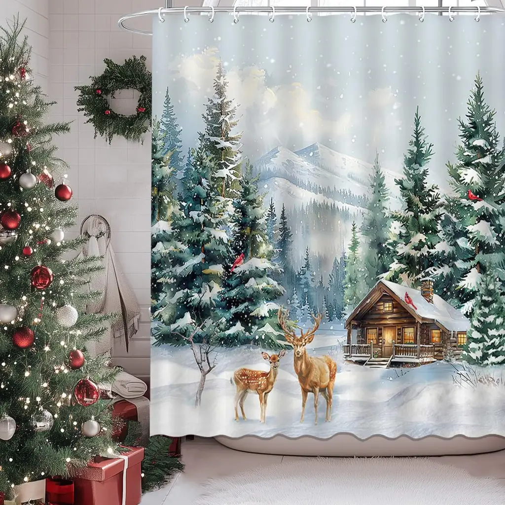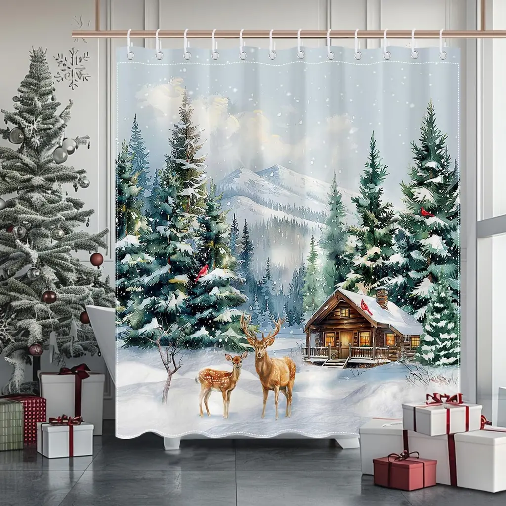Transform your bathroom into a serene winter retreat with our Winter Forest Deer Shower Curtain, featuring a picturesque design of majestic deer amidst rustic pine trees. Measuring 72x72 inches, this stunning curtain captures the essence of a peaceful woodland scene, making it a perfect addition to your holiday decor. Crafted from high-quality, water-resistant fabric, it ensures durability and easy maintenance for everyday use. The earthy tones and enchanting imagery create a warm and inviting atmosphere, ideal for embracing the beauty of nature during the winter season. Elevate your bathroom decor with this charming shower curtain that brings the tranquility of the forest indoors!