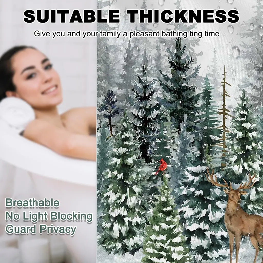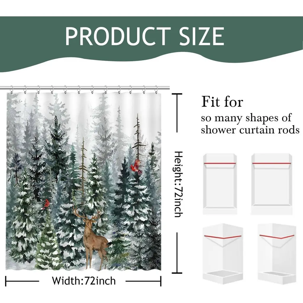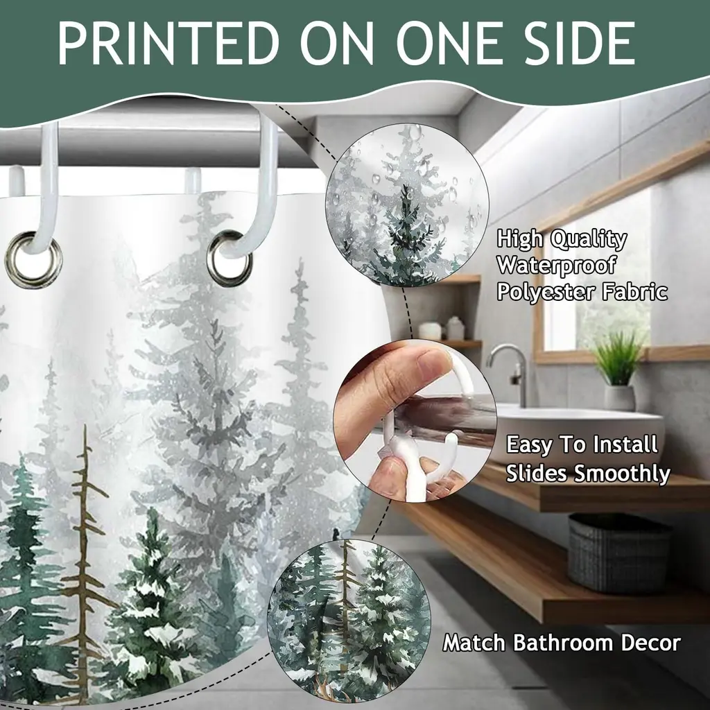 Winter Snowy Forest Shower Curtain, 72" X 72", Green Pine Tree Decor - Multicolor