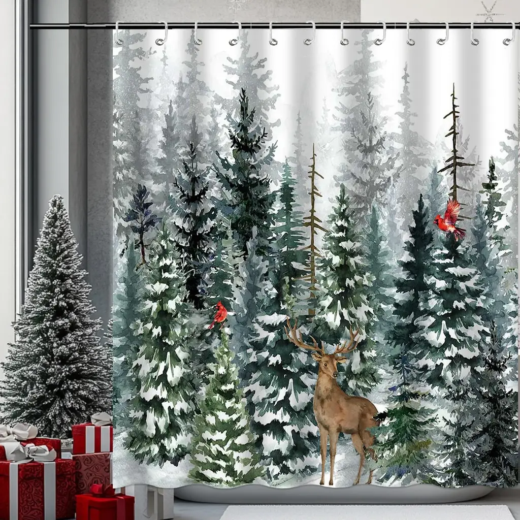 Transform your bathroom into a serene escape with our Winter Snowy Forest Shower Curtain, featuring a breathtaking design of green pine trees blanketed in snow. Measuring 72" x 72", this beautiful curtain captures the essence of a peaceful winter landscape, bringing a touch of nature indoors. Crafted from durable, water-resistant fabric, it ensures both style and functionality, providing privacy while preventing water splashes. The tranquil imagery creates a calming atmosphere, perfect for enjoying a relaxing shower during the colder months. Easy to hang and machine washable, this shower curtain is an ideal choice for enhancing your winter decor. Embrace the beauty of the season with this enchanting decor piece!