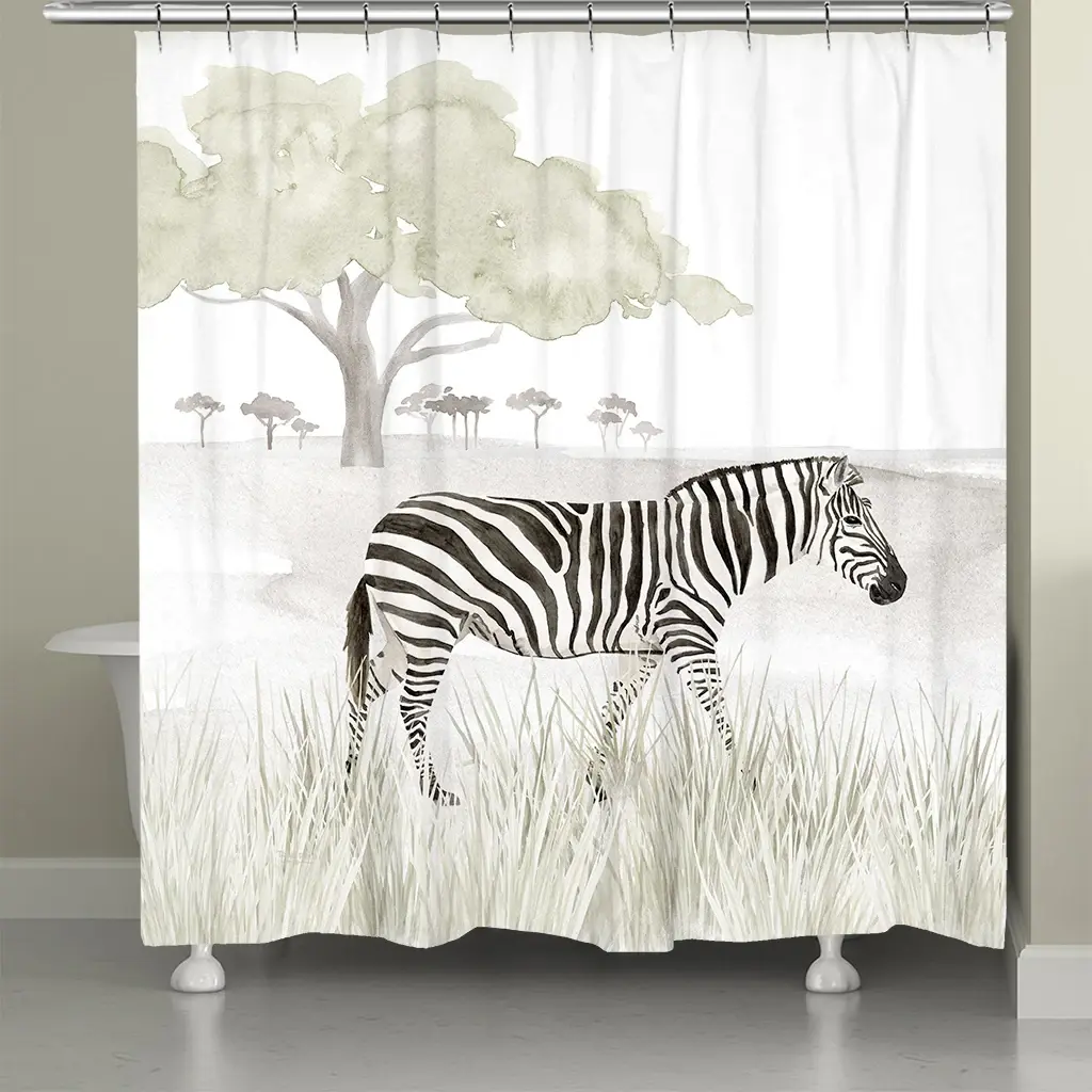 Our Zebra Shower Curtain is great decor to show off your love for wild life. The zebra becomes a bold statement against the muted gray washed background. The Zebra Shower Curtain creates a chic and modern look for any bathroom.All of our products are digitally printed to create crisp, vibrant colors and images. Made to order in the USA on imported fabric. Please allow 5-7 days for items to ship.Artist: Tara Reed