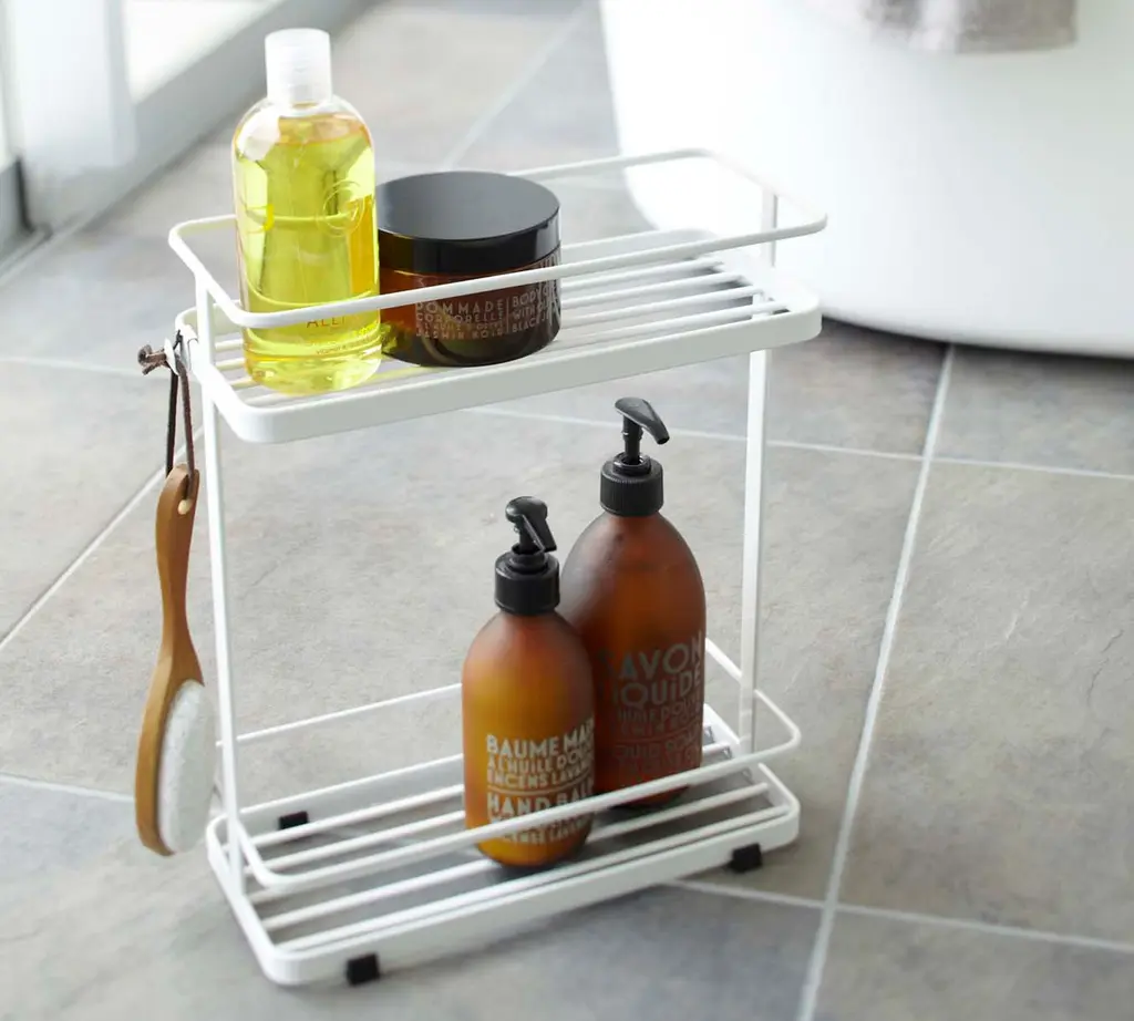 Designed in Japan, Yamazaki creates beautiful, functional products with a focus on sleek solutions. This two-tier steel caddy keeps all of your shower essentials, from shampoos and conditioners to toys for little ones, within reach, while the hooks are handy for hairbrushes and loofahs.