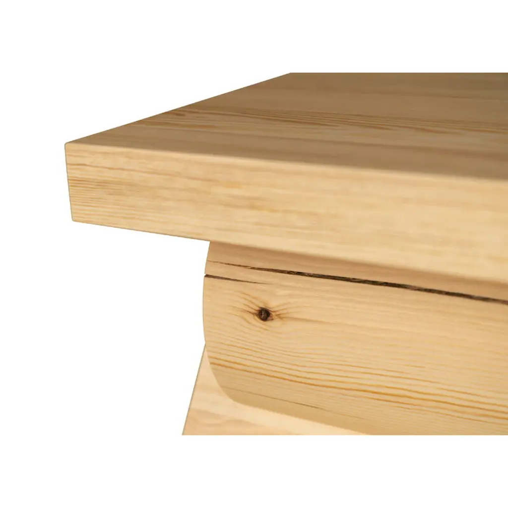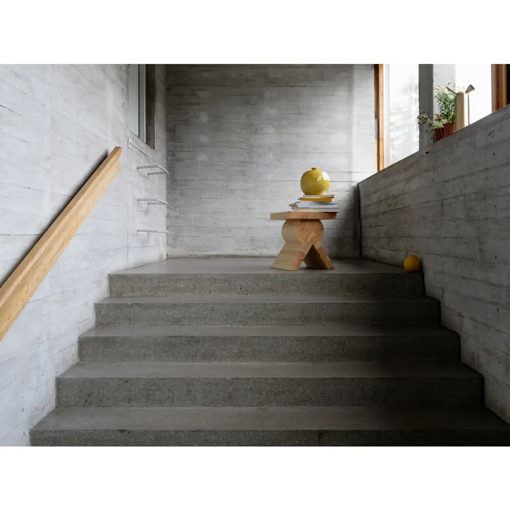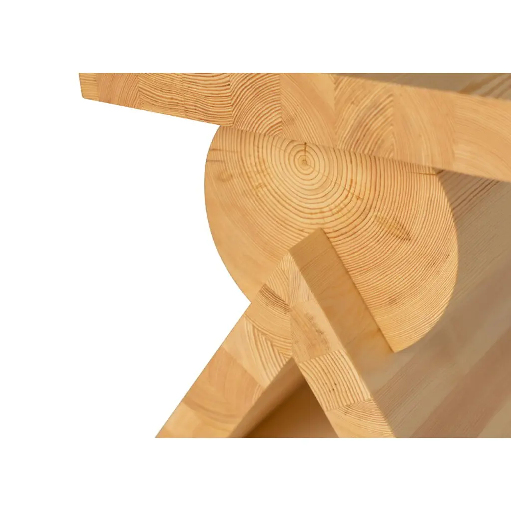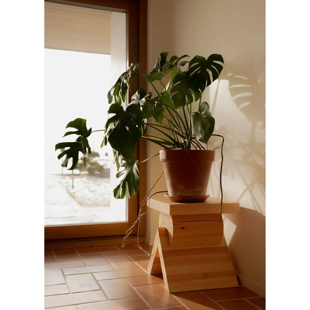 Vaarnii's AA side table, designed by Kwangho Lee, consists of three seemingly simple elements stacked on top of each other: a slat functioning as the tabletop, slanted legs forming an inverted V-shape, and an entire log in the middle. However, joining the three is no simple task, as it actually requires a lot of skill and know-how from the carpenters. Crafted from Finnish pinewood, the fascinating design will become even more interesting over time, as the natural oils and resins of the wood will react to UV rays and slowly turn the table’s color into a lovely honey shade. Pine is also softwood, meaning that scratches and dents are bound to form on the surface. Vaarnii encourages you to embrace these imperfections and see them as characterful signs of aging that only add to the allure of the piece. The multifunctional small table also works well as a stool or bench.