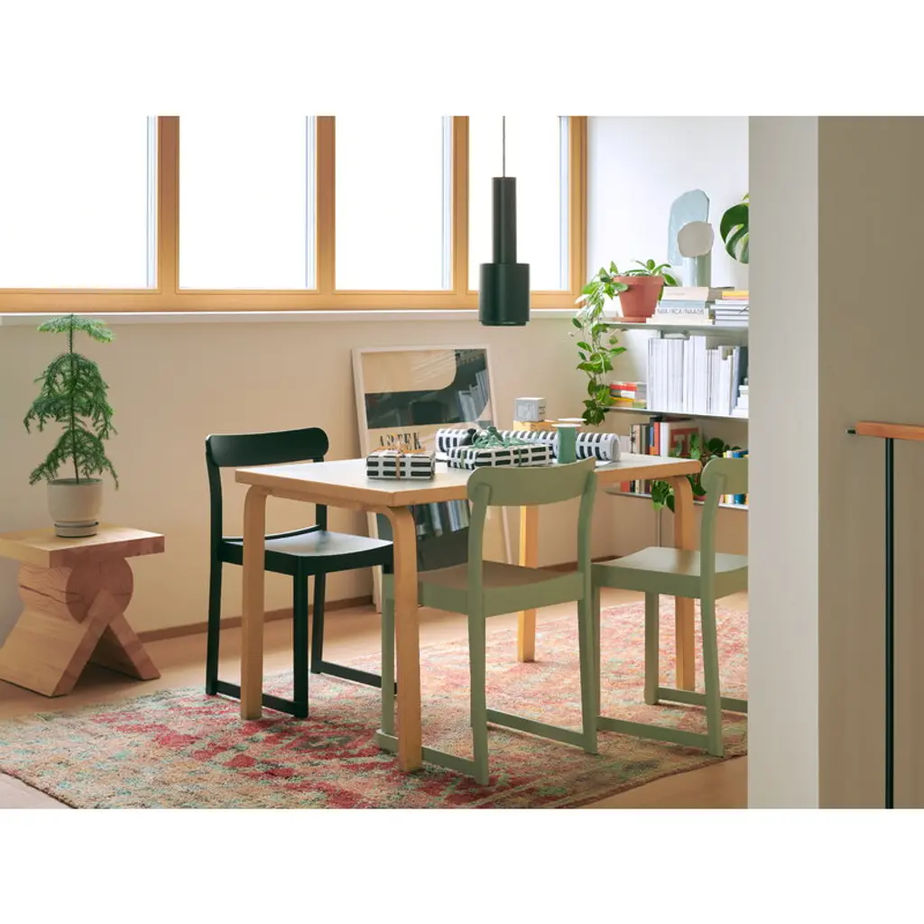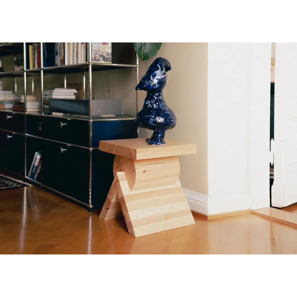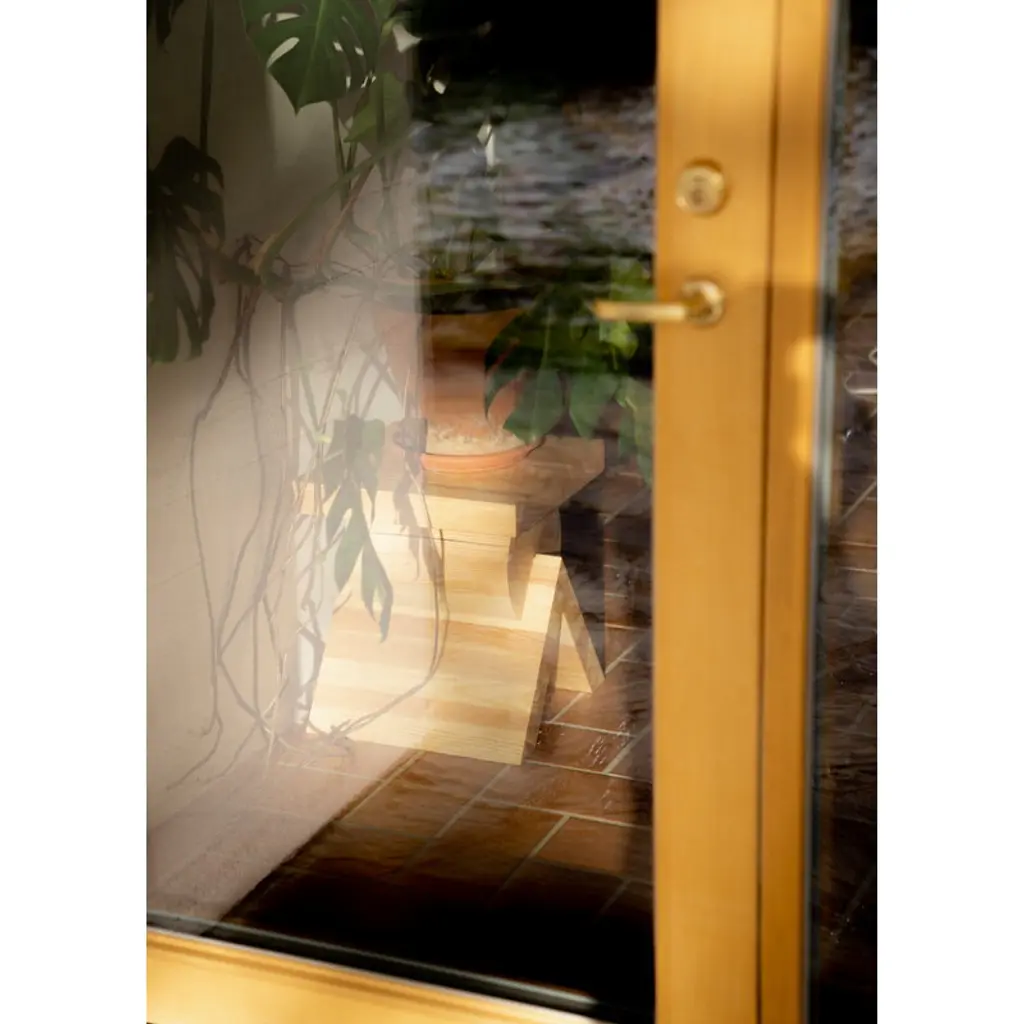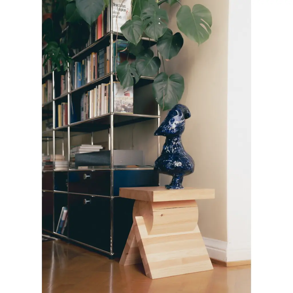 Vaarnii's AA side table, designed by Kwangho Lee, consists of three seemingly simple elements stacked on top of each other: a slat functioning as the tabletop, slanted legs forming an inverted V-shape, and an entire log in the middle. However, joining the three is no simple task, as it actually requires a lot of skill and know-how from the carpenters. Crafted from Finnish pinewood, the fascinating design will become even more interesting over time, as the natural oils and resins of the wood will react to UV rays and slowly turn the table’s color into a lovely honey shade. Pine is also softwood, meaning that scratches and dents are bound to form on the surface. Vaarnii encourages you to embrace these imperfections and see them as characterful signs of aging that only add to the allure of the piece. The multifunctional small table also works well as a stool or bench.