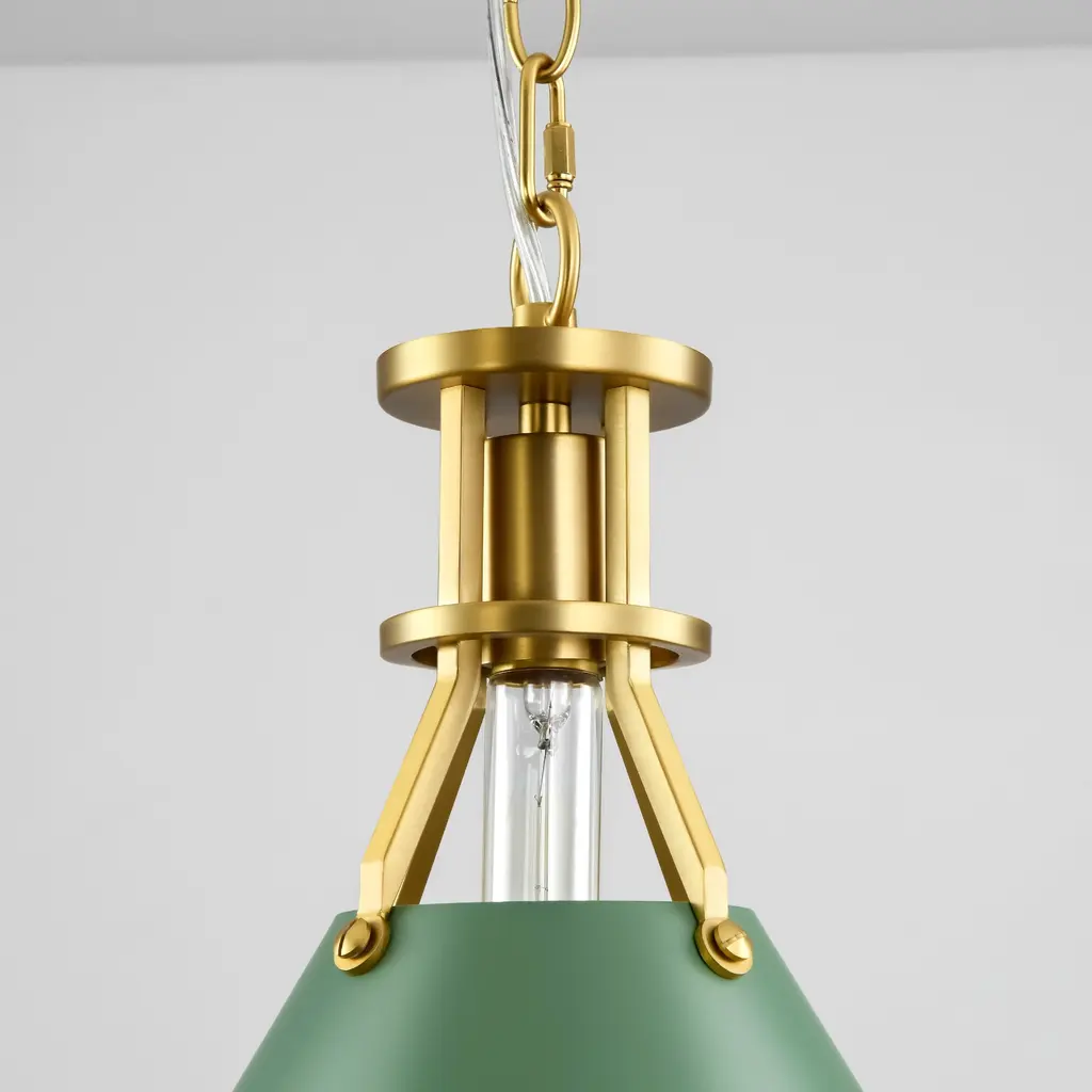 1-Light Modern Industrial Brushed Gold Cone Adjustable Pendant Light For Kitchen Island - Green