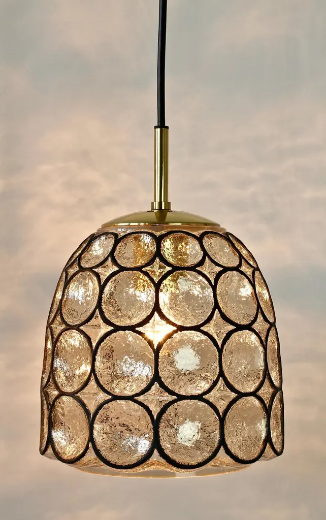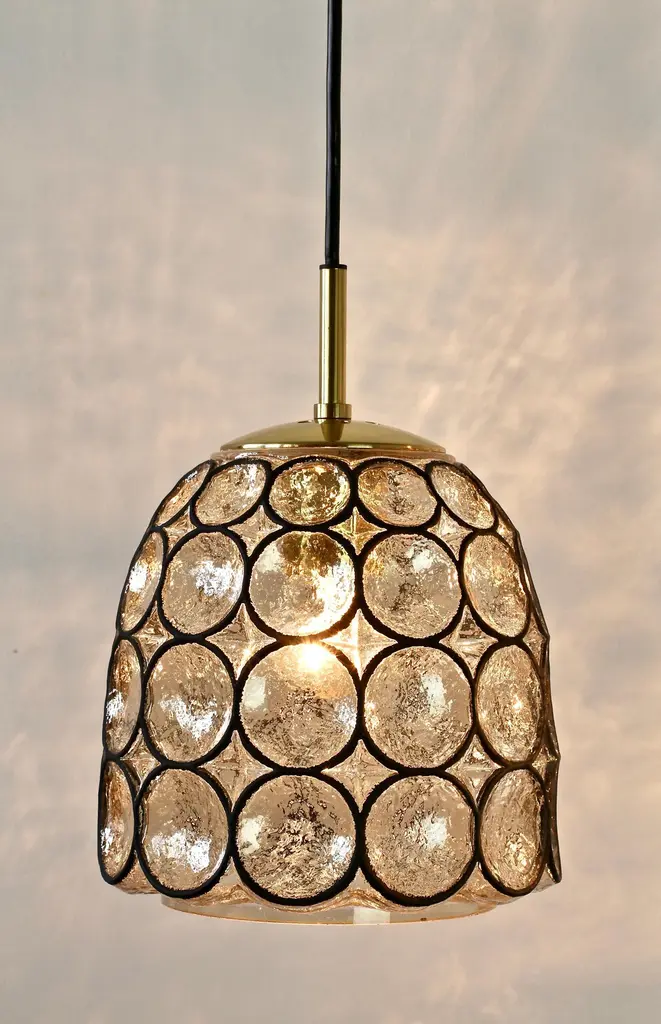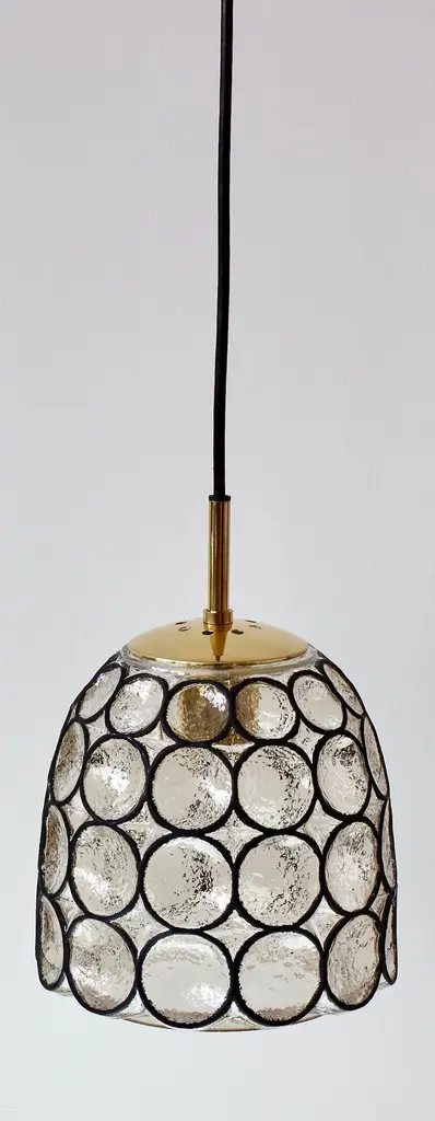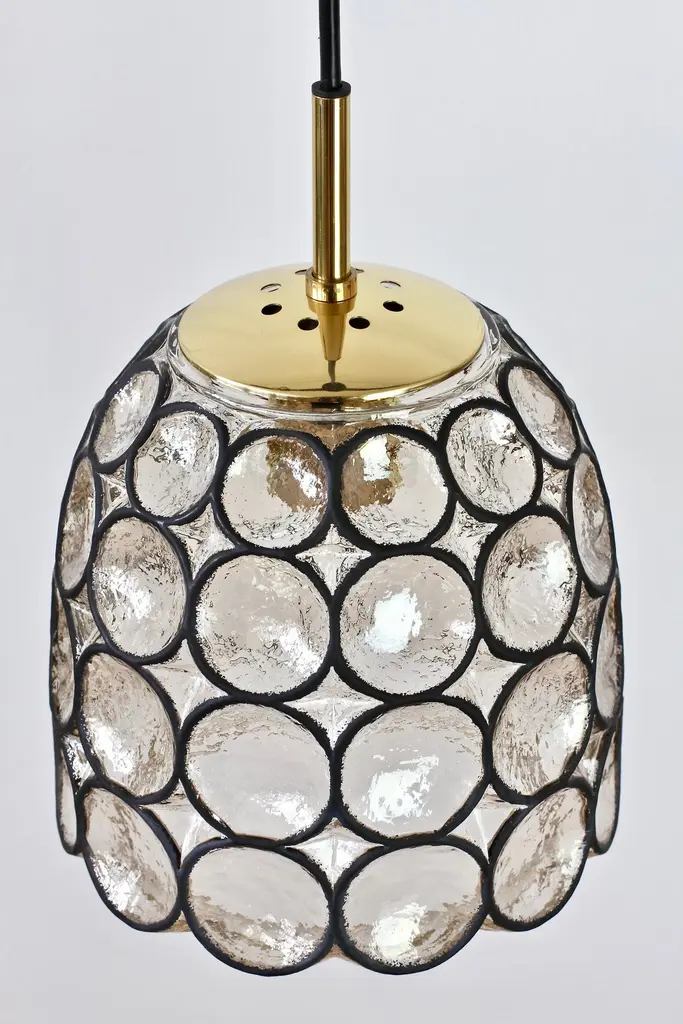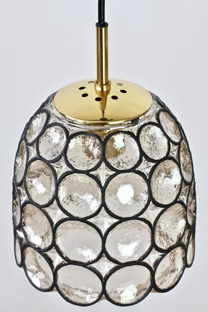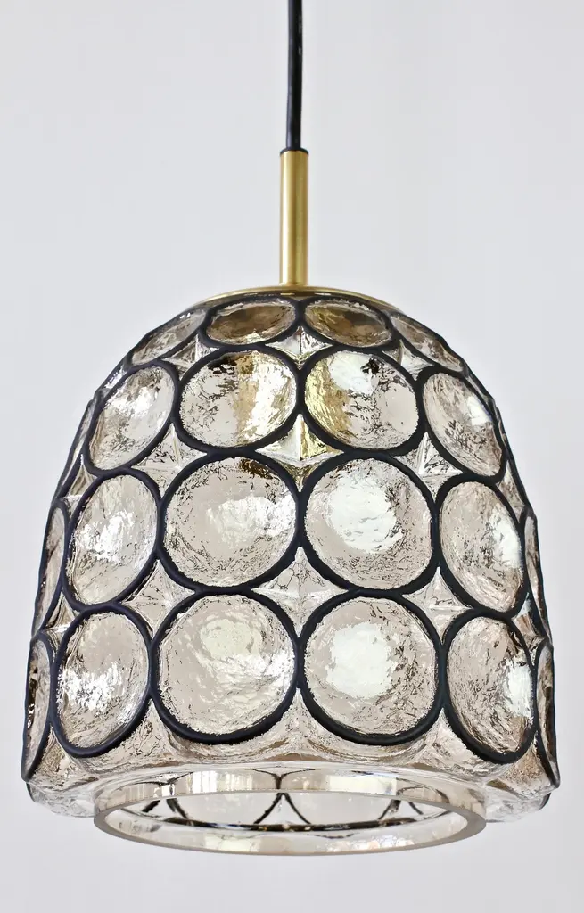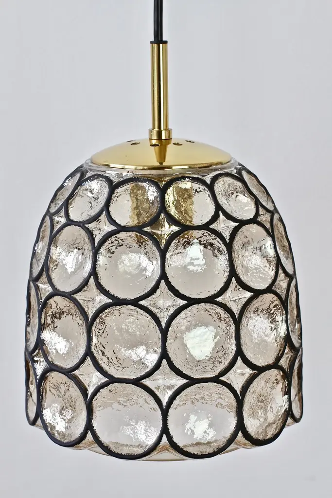 1 Of 3 Limburg Glashütte Iron & Bubble Glass Vintage Pendant Lamps, Circa 1960s