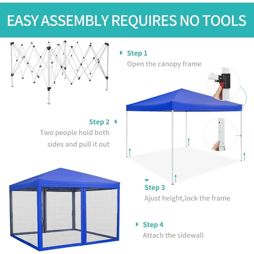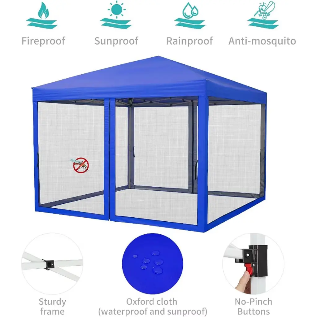 10x10' Pop Up Canopy, Heavy Duty Tent With 4 Sidewall Nets, Height Adjustable Portable Sun Shelter With Roller Bag For Parties Camping, Royal Blue
