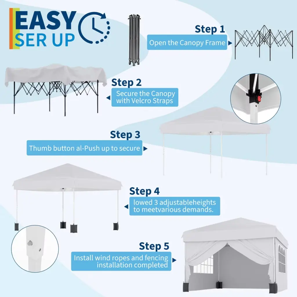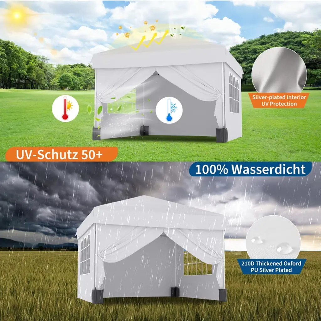10x10 Pop Up Canopy With 4 Sidewalls - Waterproof Outdoor Portable Canopy Tent With Carry Bag, Stakes & Guy Lines - For Camping, Beach, Backyard