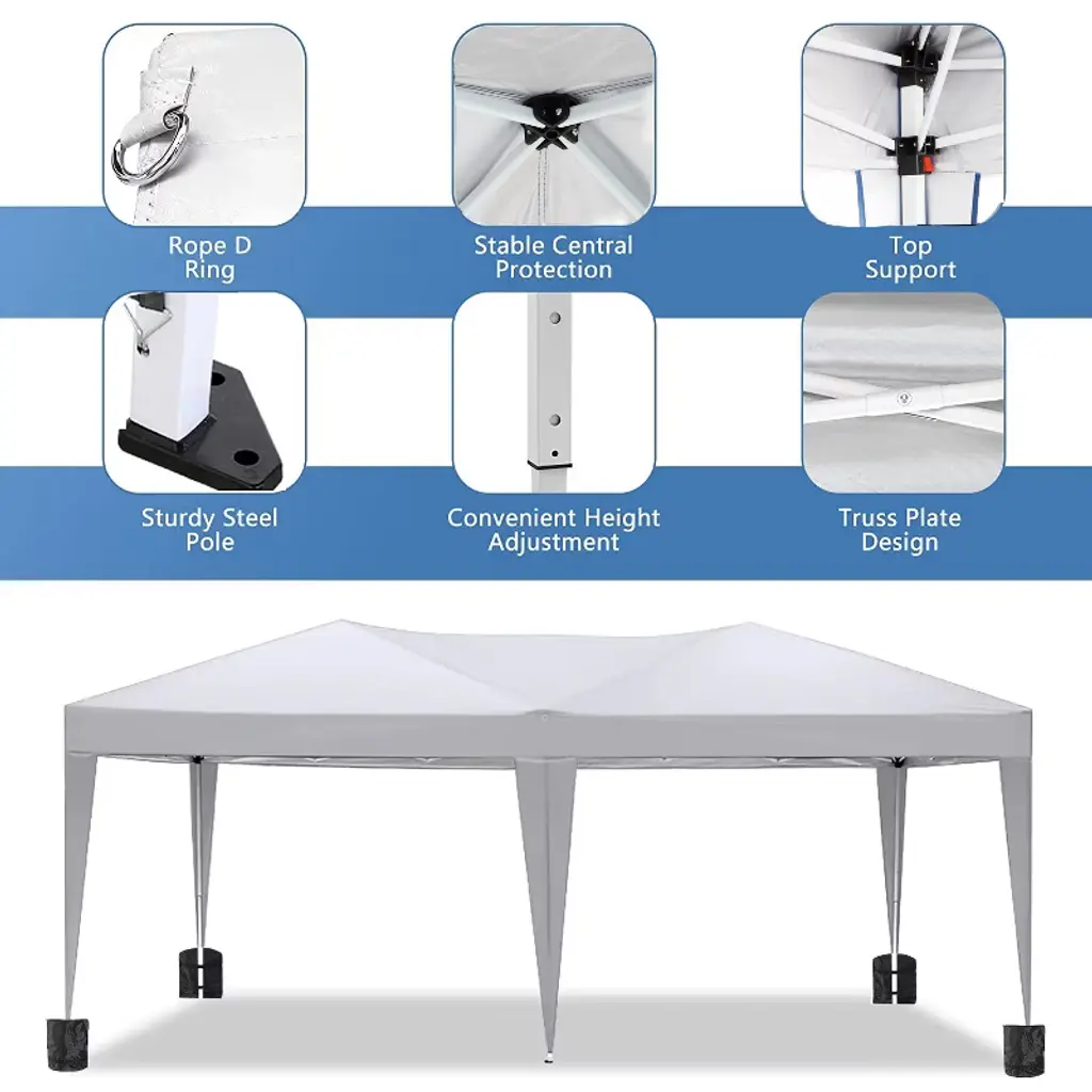 Product Name:Folding Canopy Product Style:Modern Main Material:Metal Color:Blue,White,Pink,Beige Product Dimensions:as shown Product Weight:62.00lbs. Number of packages:1 Package Size:47.00*15.00*10.00in. Package Weight:64.00lbs. Portable and Convenient Storage: This canopy comes with a travel-friendly carrying bag, making it easy to transport and store. Its lightweight design makes it ideal for outdoor adventures, ensuring you have quick shelter on hand.