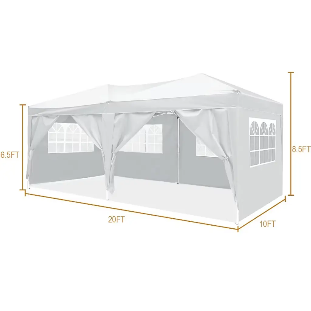 10x20 Ft Outdoor Pop Up Canopy, Portable Canopy Tent With 6 Removable Sidewalls, Beach Sun Shelter, Outdoor Canopy For Parties Camping Wedding White