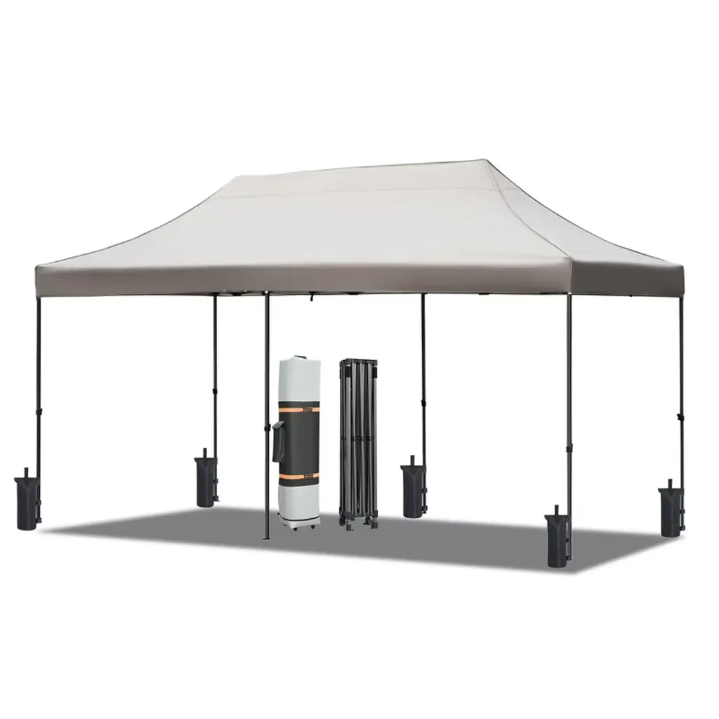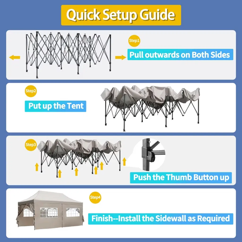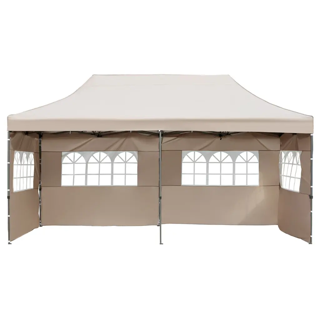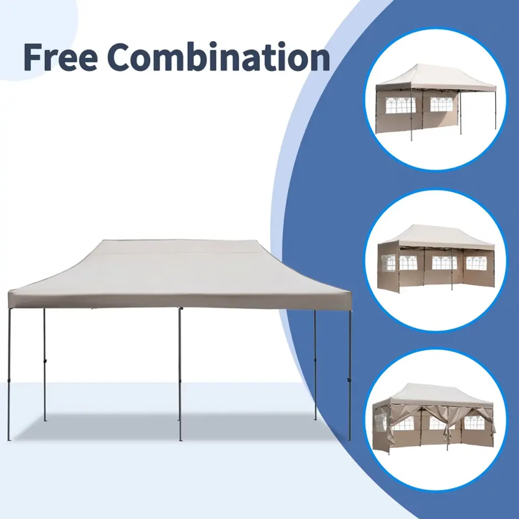 10x20 Ft Pop Up Canopy Tent, Commercial Instant Canopy With 6 Sidewalls & 6 Sandbags, Adjustable Party Gazebo For Camping Wedding Gatherings Khaki