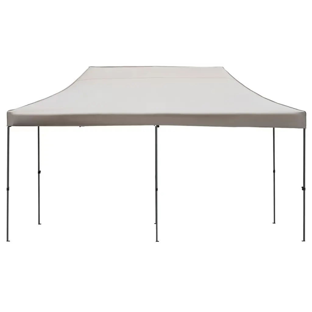 Dimensions: Interior Depth - Front to Back: 10' D Interior Height - Top to Bottom: 124’ - 128 - 132 H Interior Width - Side to Side: 20' W Shape: Rectangular Square Footage:200square feet Material Frame: Iron Fabric: Oxford cloth Adjustable Height: Yes Roof Hanging Weight Capacity: 88 LBS Number of Guylines: 6 Maintenance & Notice: 1. About Assembly Always follow the manufacturers instructions to anchor the canopy for safe setup, use, and dismantling. 2. About Stability Use rope with L-shaped spikes and sandbags to fix the product for increased stability. 3. About Weather Do not use the canopy during instances of strong winds, heavy rain, as this may cause damage to the product or pose a hazard. 4. About Care Avoid prolonged sunlight to protect fabric. For stains, spray no-clean detergent and wipe with a wet towel.