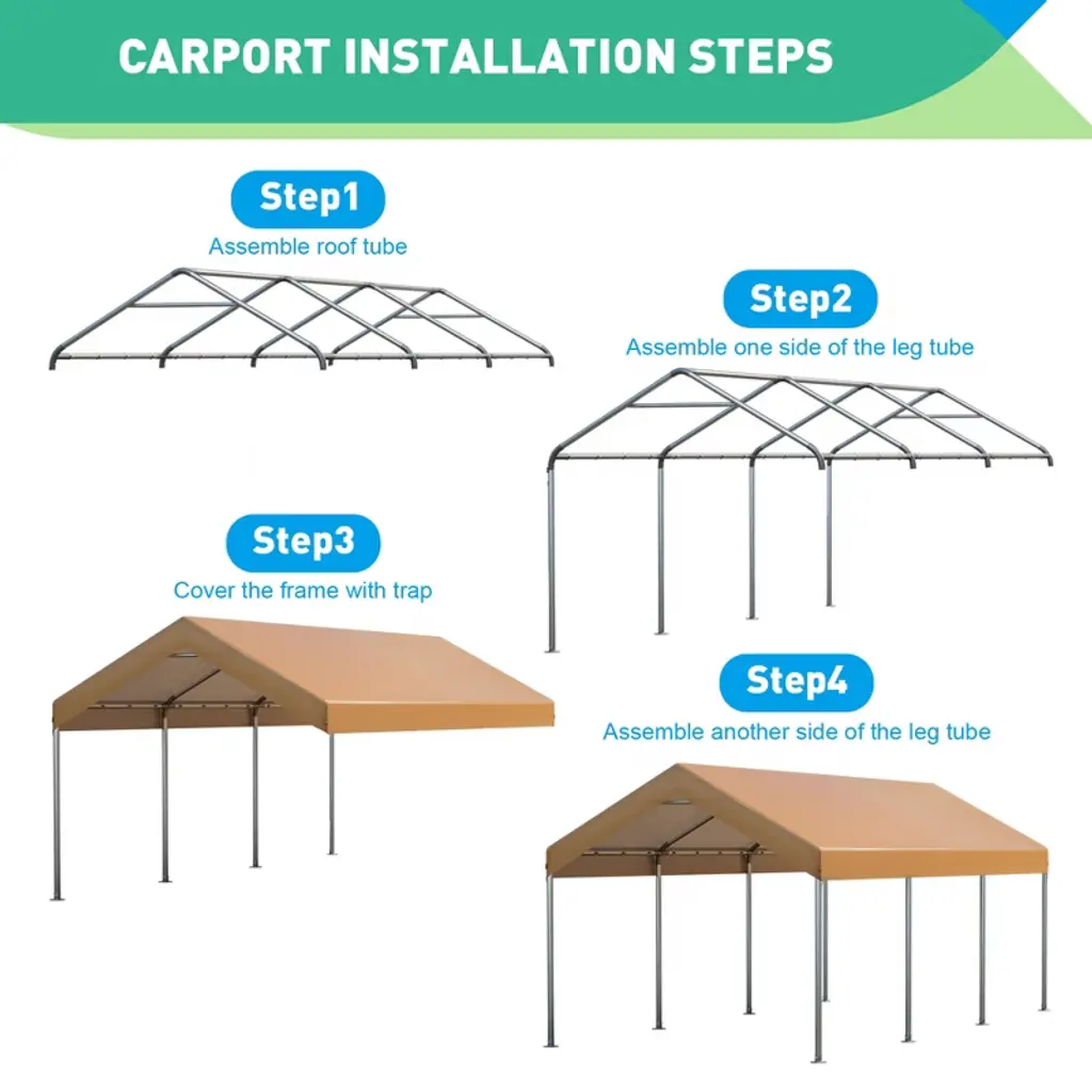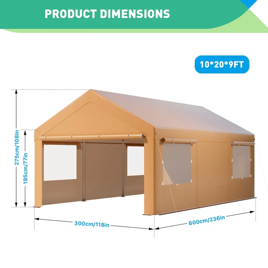 Introducing the 10X20FT Heavy Duty Carport Canopy, the solution for protecting your vehicles and equipment from the elements. This portable garage is designed with durability and convenience in mind, featuring removable sidewalls and roll-up windows for maximum ventilation and versatility. Crafted with waterproof materials, this carport canopy ensures your car, motorcycle, or boat stays dry and shielded from rain, snow, and harmful UV rays.