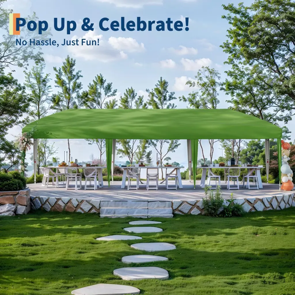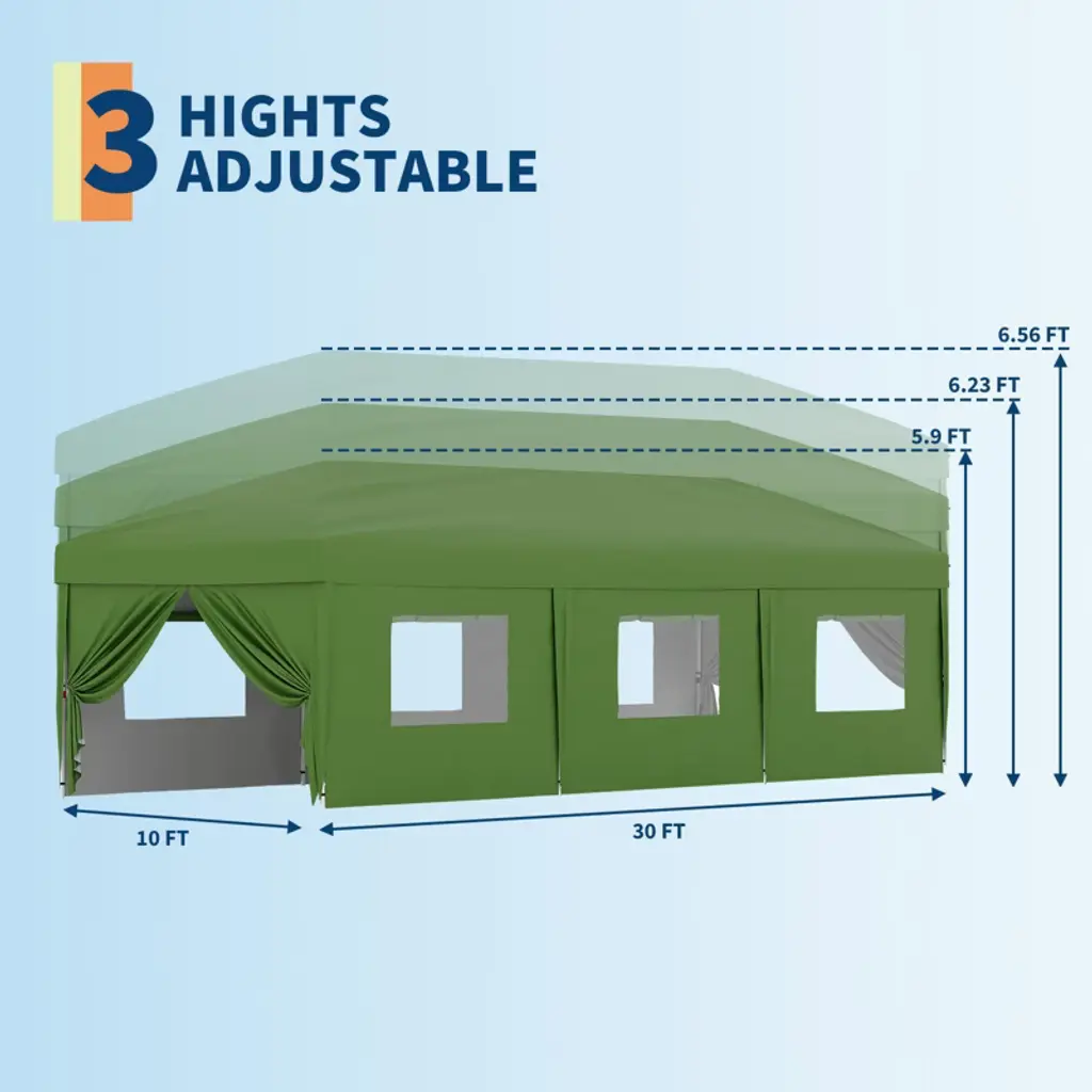 10x30 Pop Up Canopy With 8 Sidewalls - Heavy Duty Outdoor Canopy Tent With Portable Roller Bag - Green