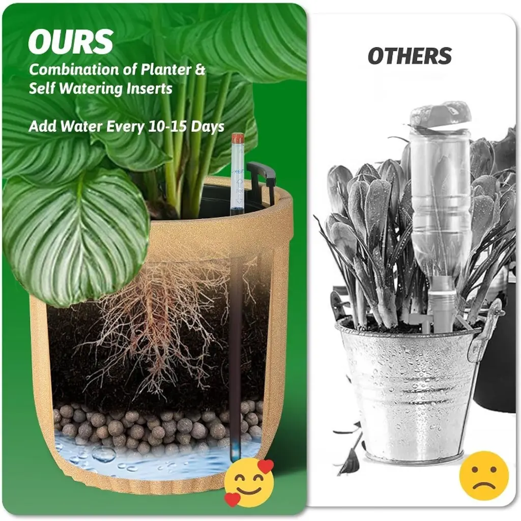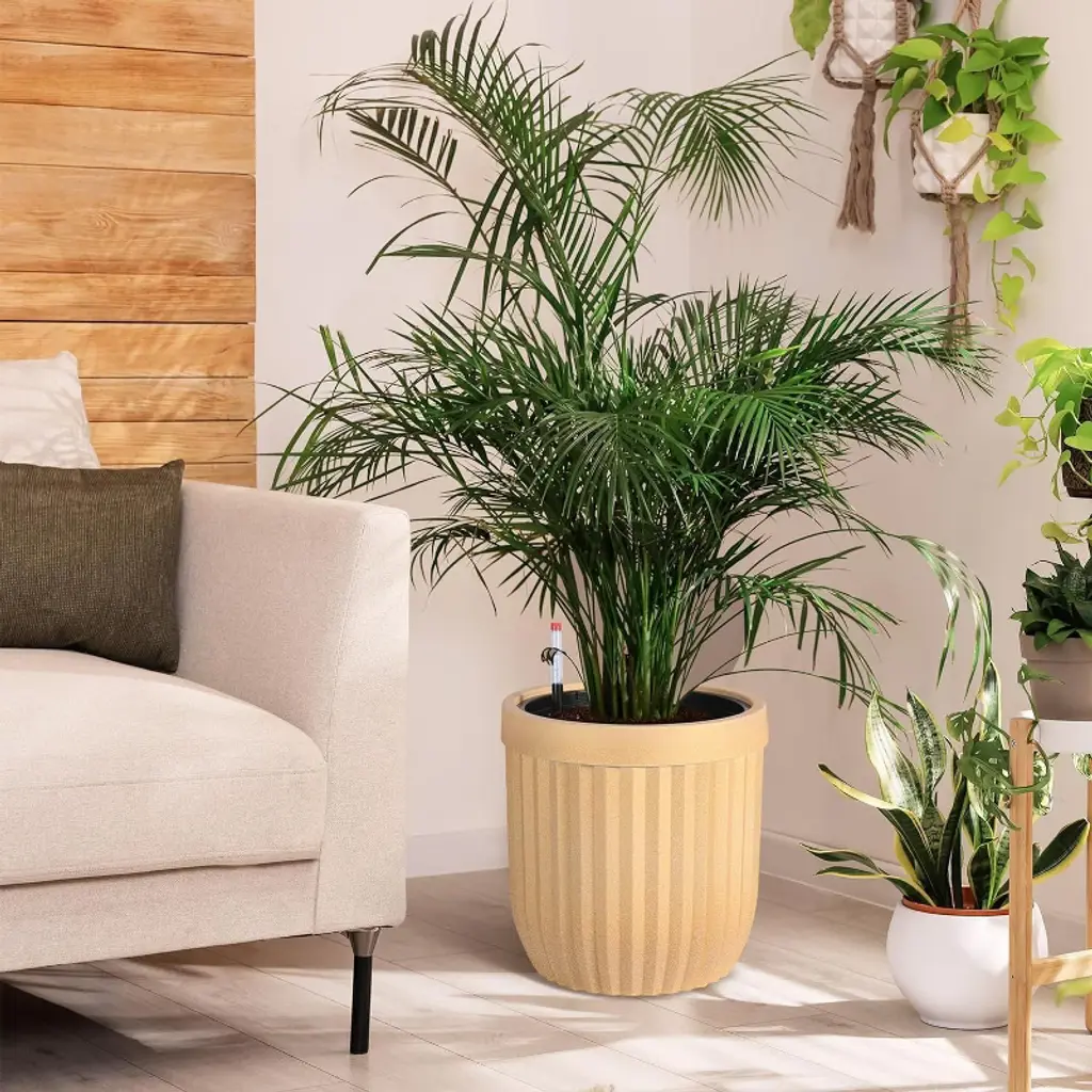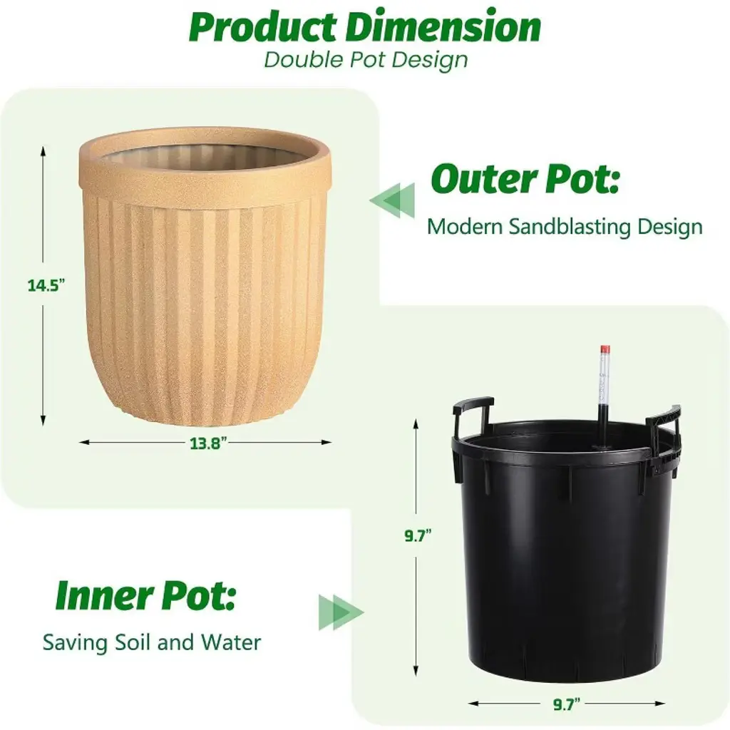 These self-watering pots showcase a luxurious marble-inspired finish created with advanced Microcrystal Technology, making them approximately 30% lighter than ceramic versions while offering strong resistance to cracks, UV rays, scratches, and fading. This ensures they maintain an elegant appearance year-round, suitable for both indoor and outdoor settings. Equipped with a water level monitor, these tall planters allow effortless tracking of water levels and watering schedules, removing guesswork and saving you time while keeping your plants consistently hydrated and healthy. The integrated water level tracking system helps prevent issues caused by over- or under-watering, reducing maintenance to around two weeks and supporting optimal plant growth with minimal attention. Designed for versatility, these planters are suitable for use in living rooms, offices, patios, gardens, or any space needing a stylish yet practical planting solution. Available in three convenient sizes—14.5”, 23”, and 31”—and three classic colors: Black, White, and Gold, they easily accommodate a wide variety of plants and complement diverse décor styles. Hidden wheels and built-in handles add mobility and ease of lifting, allowing you to move and position your planters effortlessly. Combining modern design with user-friendly features, these planters are an excellent choice for enhancing your home or garden environment with both beauty and function.