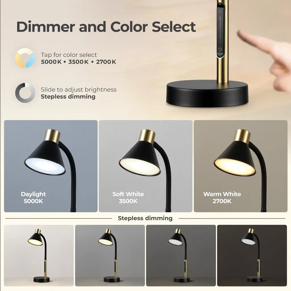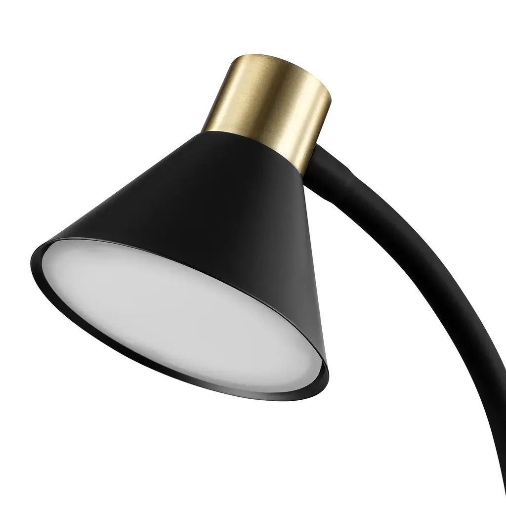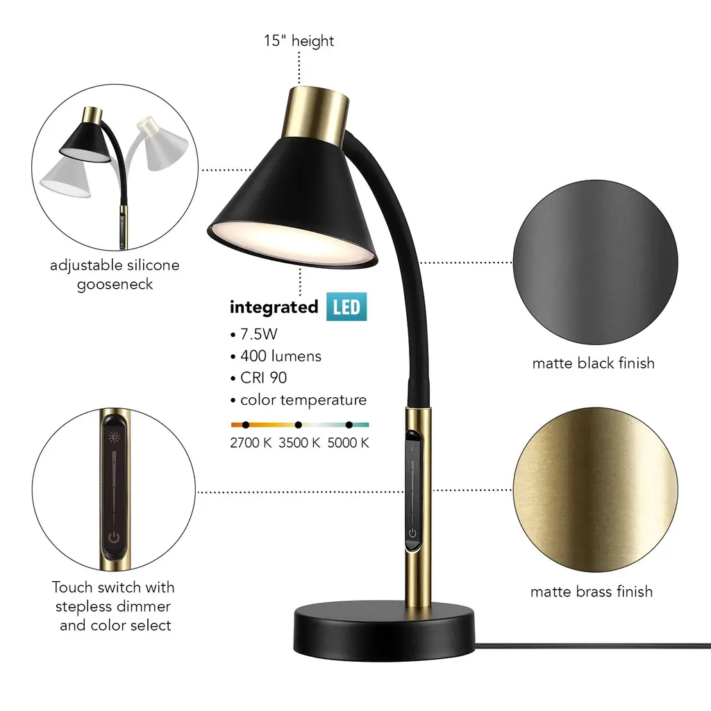 15" Led Integrated Matte Black Desk Lamp With Matte Brass Accent And Adjustable Silicone Gooseneck - 5" - Matte Black - 5"