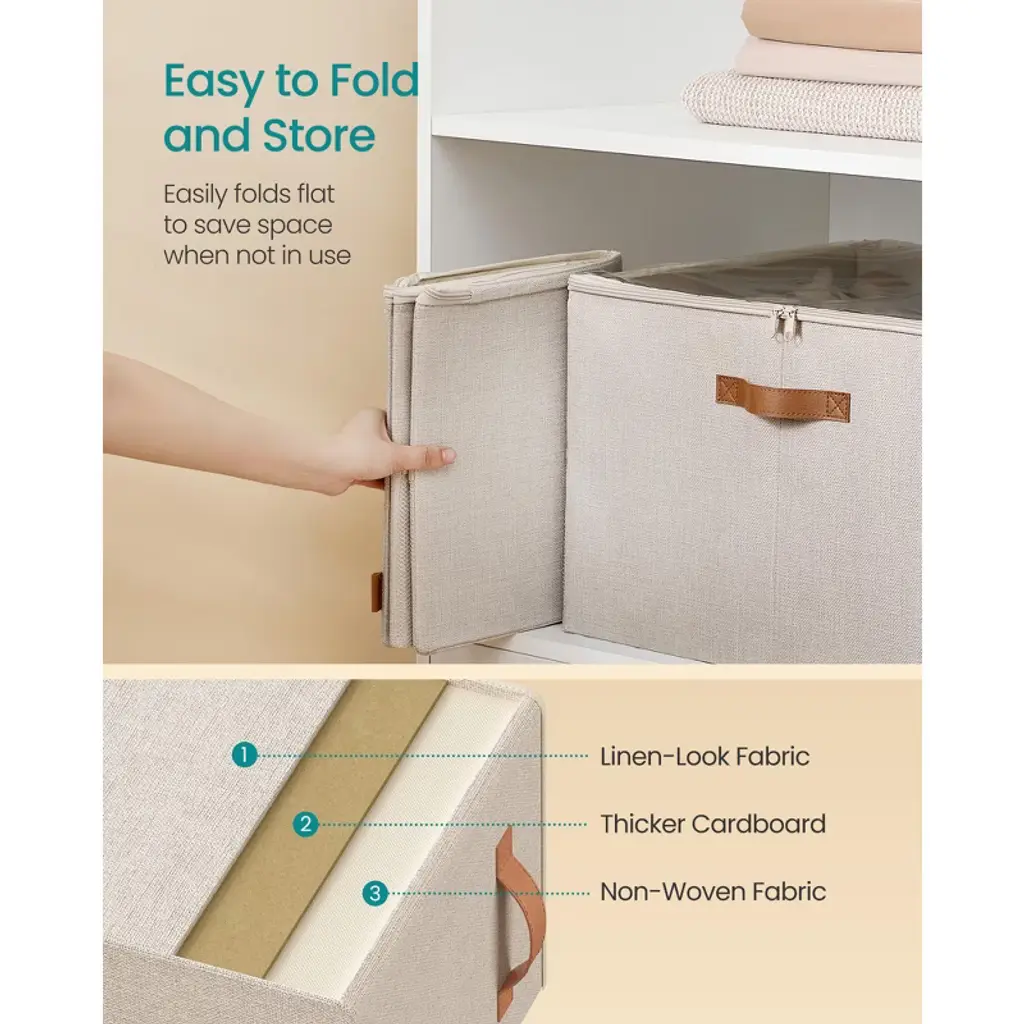 Transform your closet organization with this premium 16-pair shoe storage solution featuring a crystal-clear PVC cover that keeps footwear dust-free while allowing instant visibility. The innovative design boasts fully adjustable polypropylene dividers that customize to any shoe size, from delicate sandals to bulky winter boots. Built with durable reinforced cardboard walls and three ergonomic handles, this organizer combines sturdy construction with easy portability. Bonus side mesh pockets provide convenient storage for cleaning supplies or small accessories. When not in use, it folds flat for compact storage. Perfect for bedrooms, walk-in closets or dorm rooms, this cappuccino beige organizer brings both functionality and style to your space. Material: Non-Woven Fabric, PVC (Polyvinyl Chloride) Plastic, PP (Polypropylene) Plastic, Cardboard Product Size: 21.3"L x 16.9"W x 12.8"H (54 x 43 x 32.5 cm) Product Weight: 4.9 lb (2.2 kg) Max. Static Load Capacity: 35 lb (16 kg)