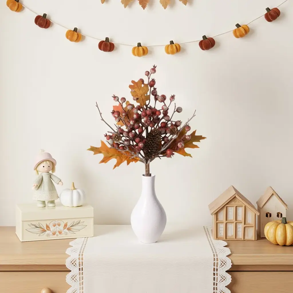 18" Artificial Fall Berry Leaf Pick, Multicolor