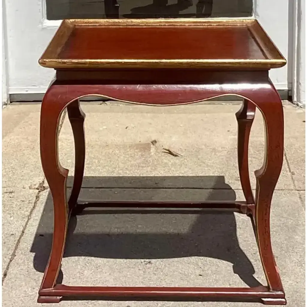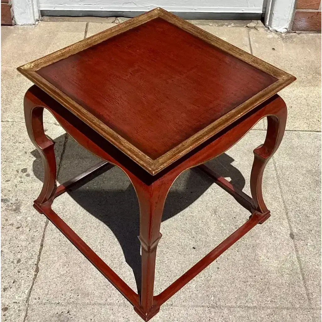18th C Style Burton-Ching Red Ming Chinoiserie Side Table. 1 of 2 available.
